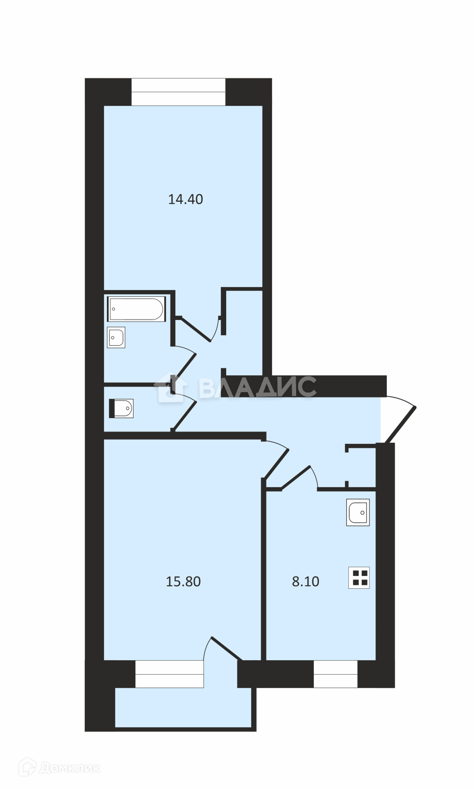 Общая площадь 50,4 кв м. Комнаты изолированные 15,8+14,4 кв м, кухня 8,1 кв м, с/у раздельный, лоджия. ТРЕБУЕТСЯ ПОЛНЫЙ РЕМОНТ. Вода - oбщедомовая скважина (нет платежей за воду), есть электричество, канализация - общедомовая КНС, газ - трасса протянута вдоль дома ( возможна врезка всего дома).