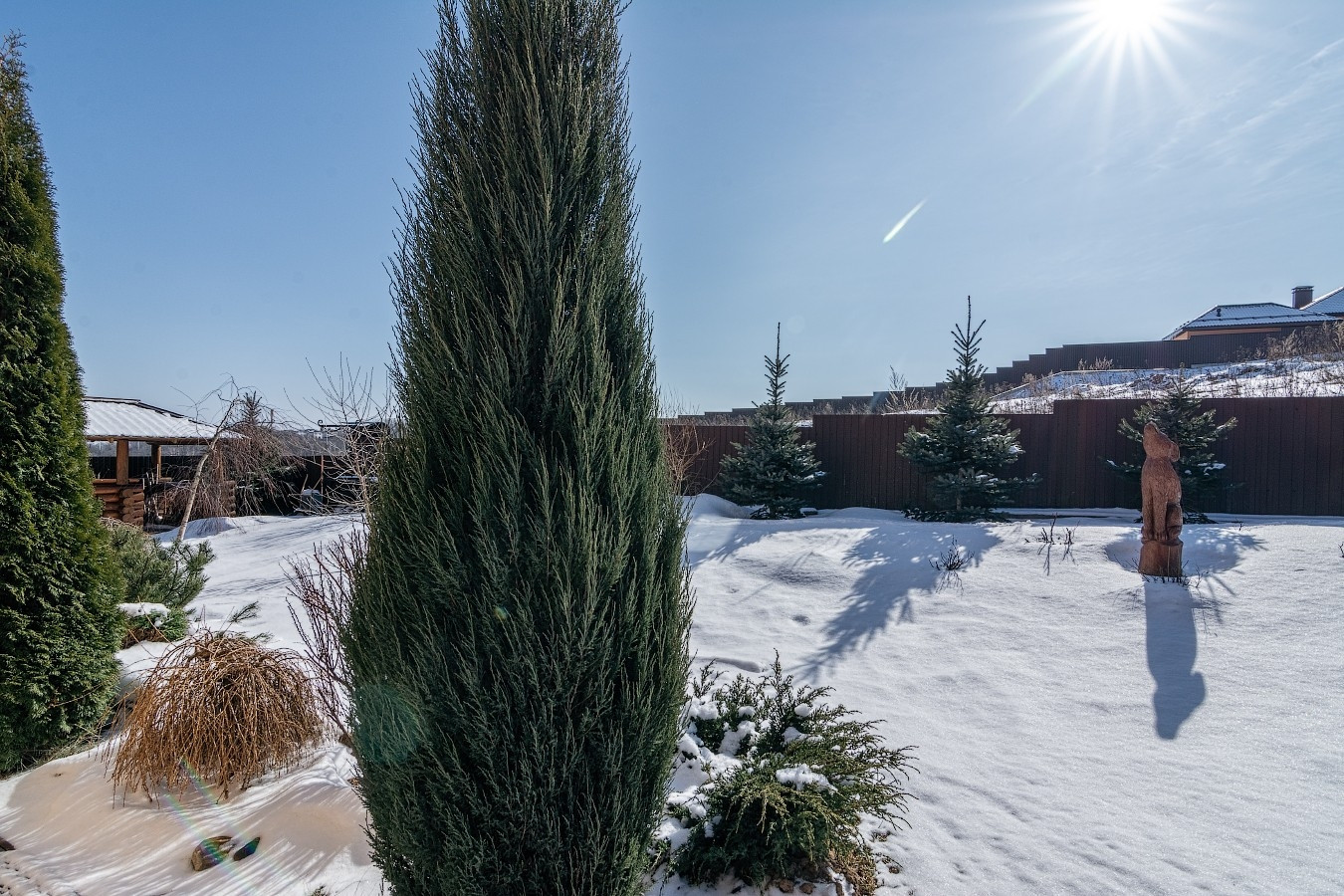 на участке ландшафтный дизайн.
