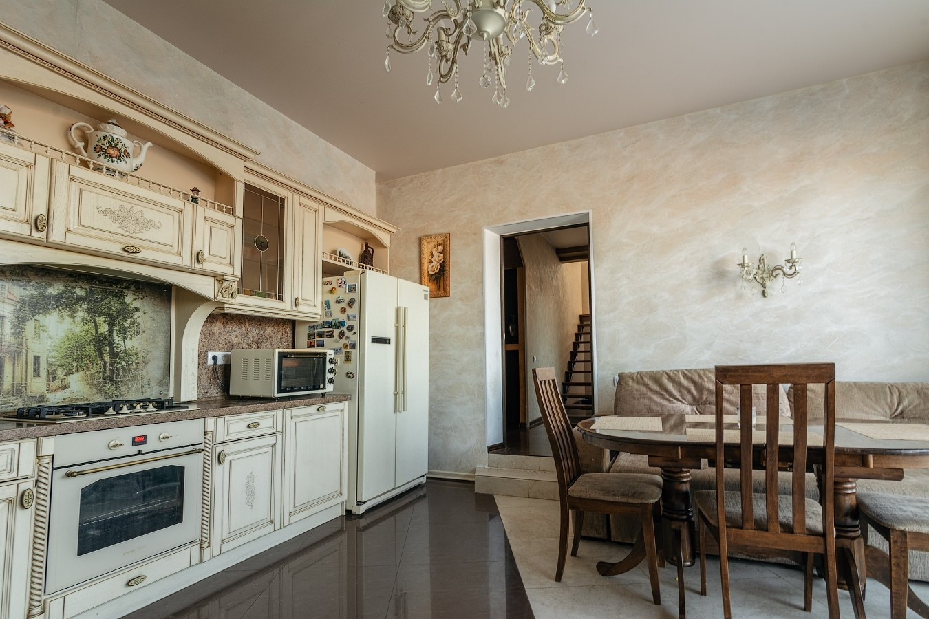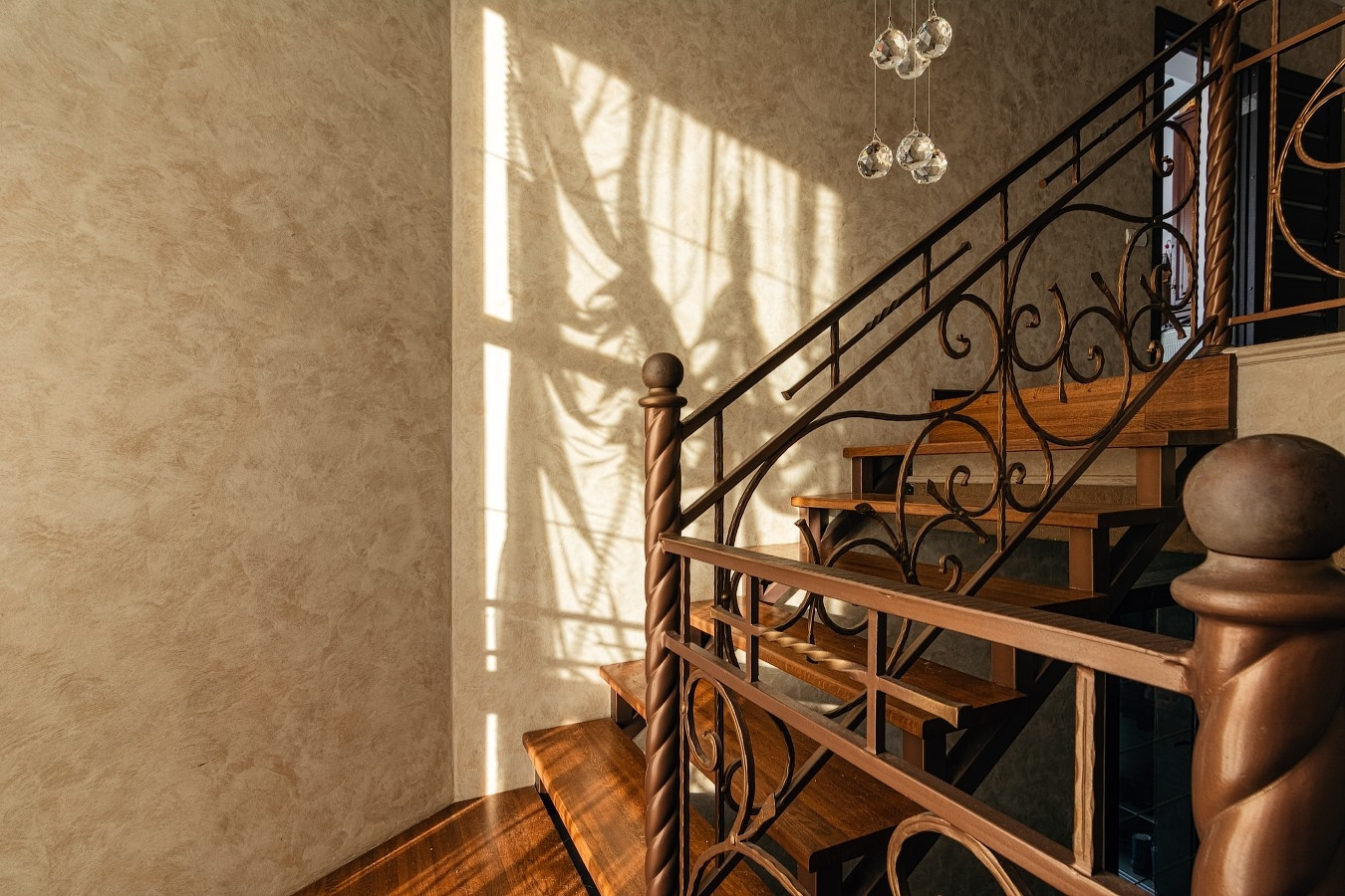 на первом этаже тёплый пол. декоративная штукатурка ( творение умелых рук Деруфы). Второй свет. удобная лестница с эксклюзивной ковкой.