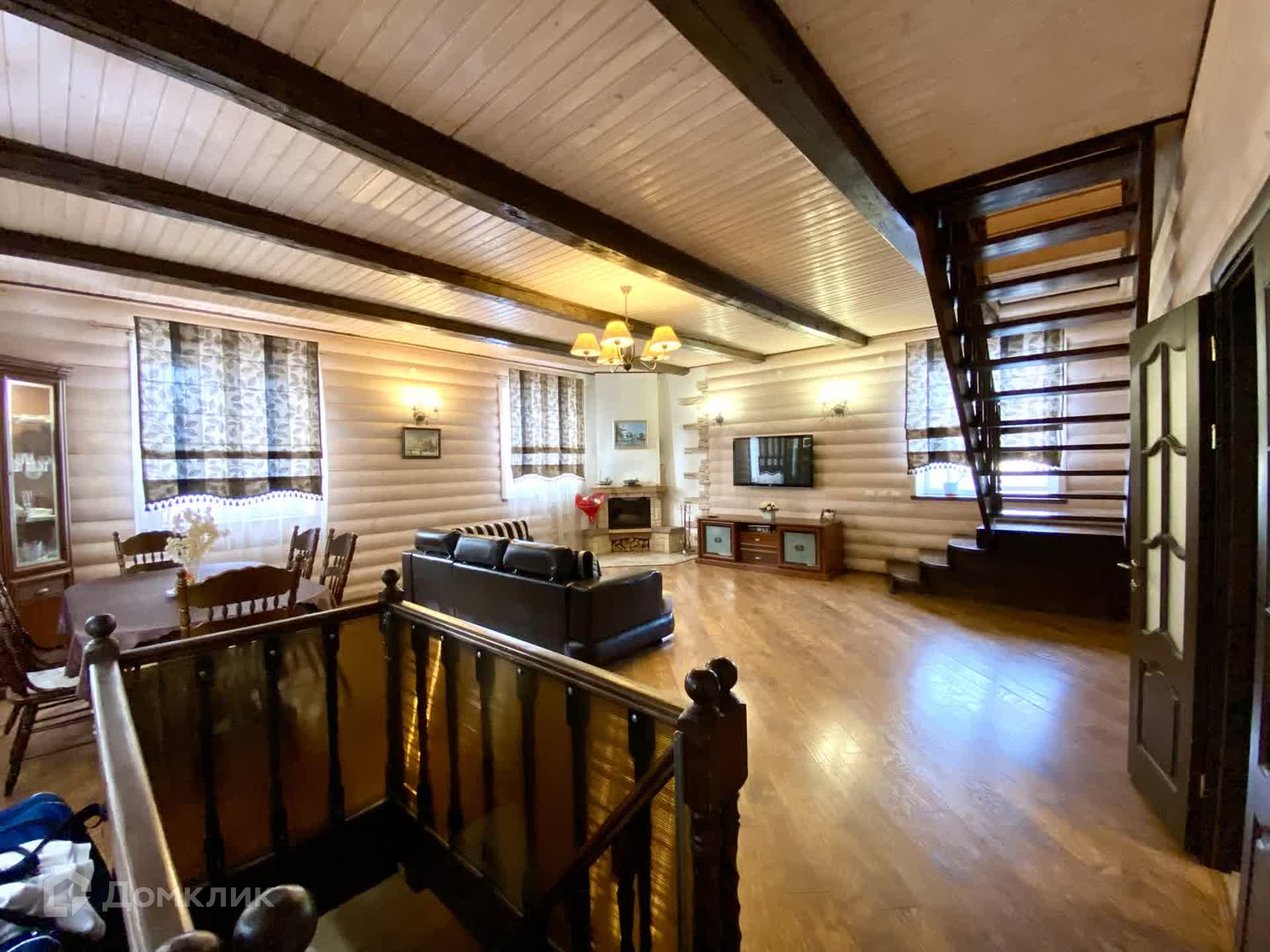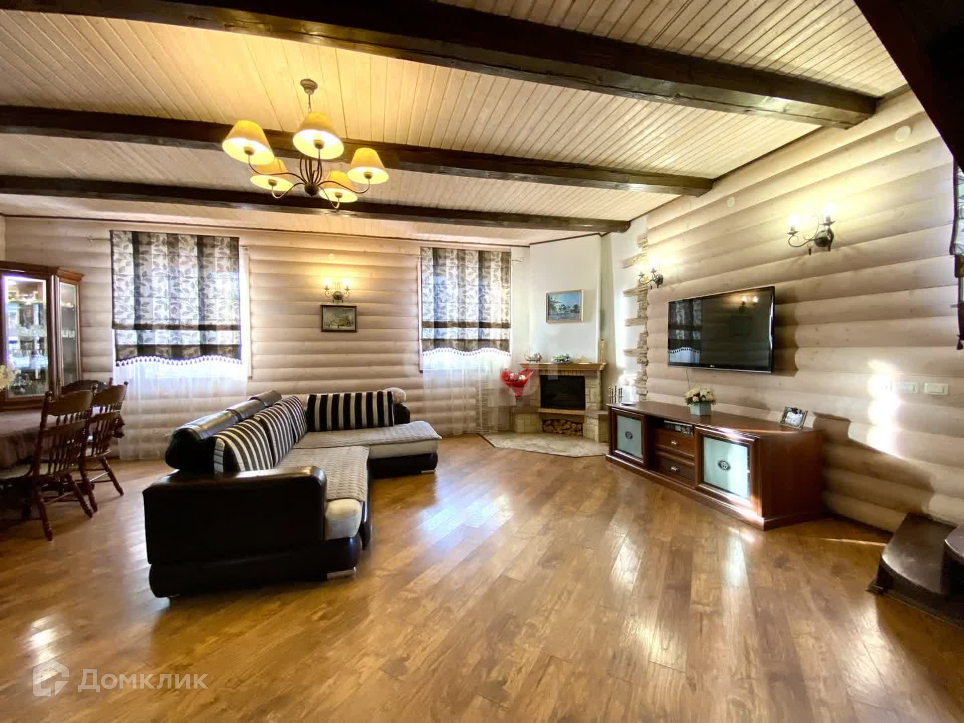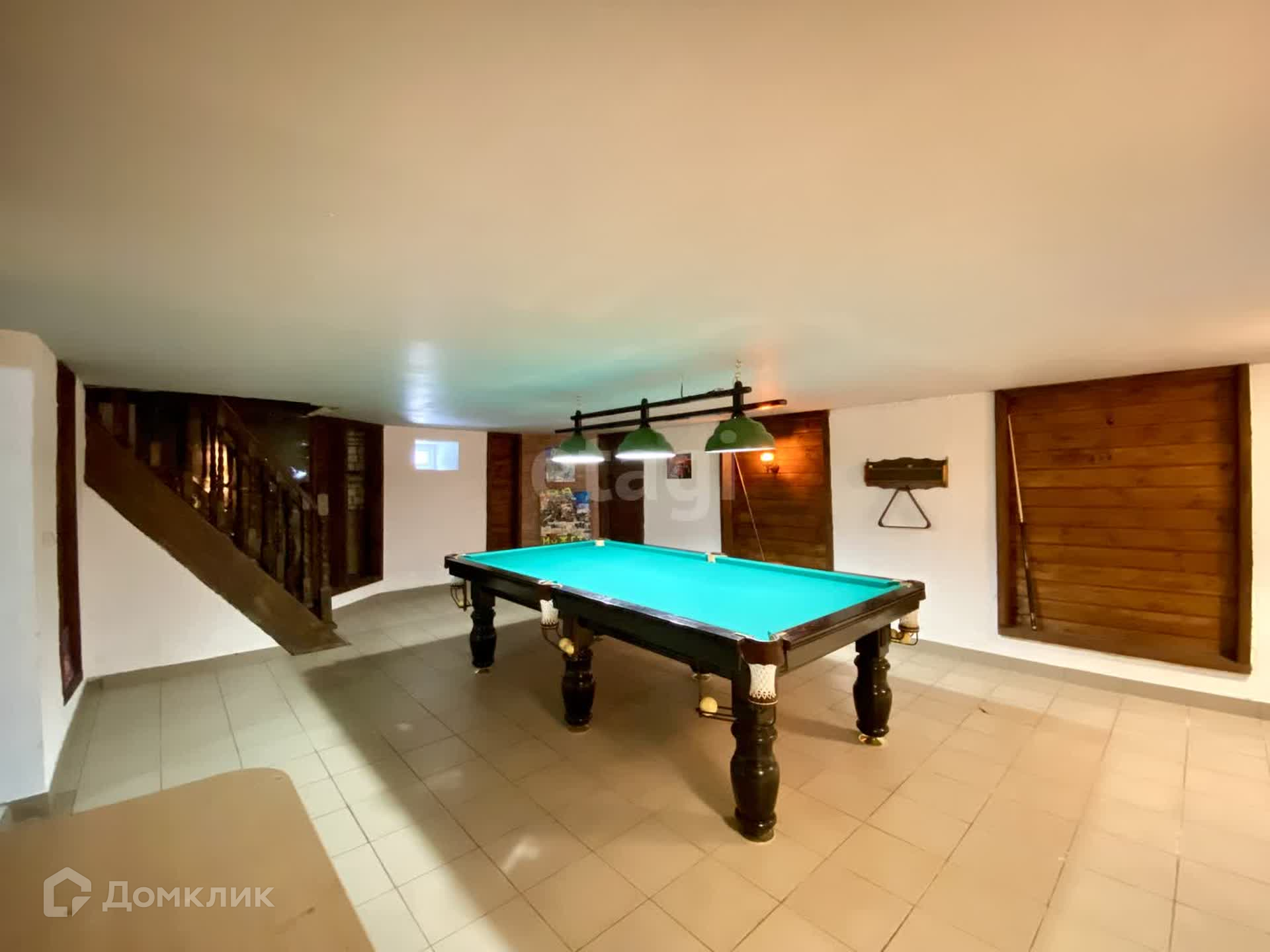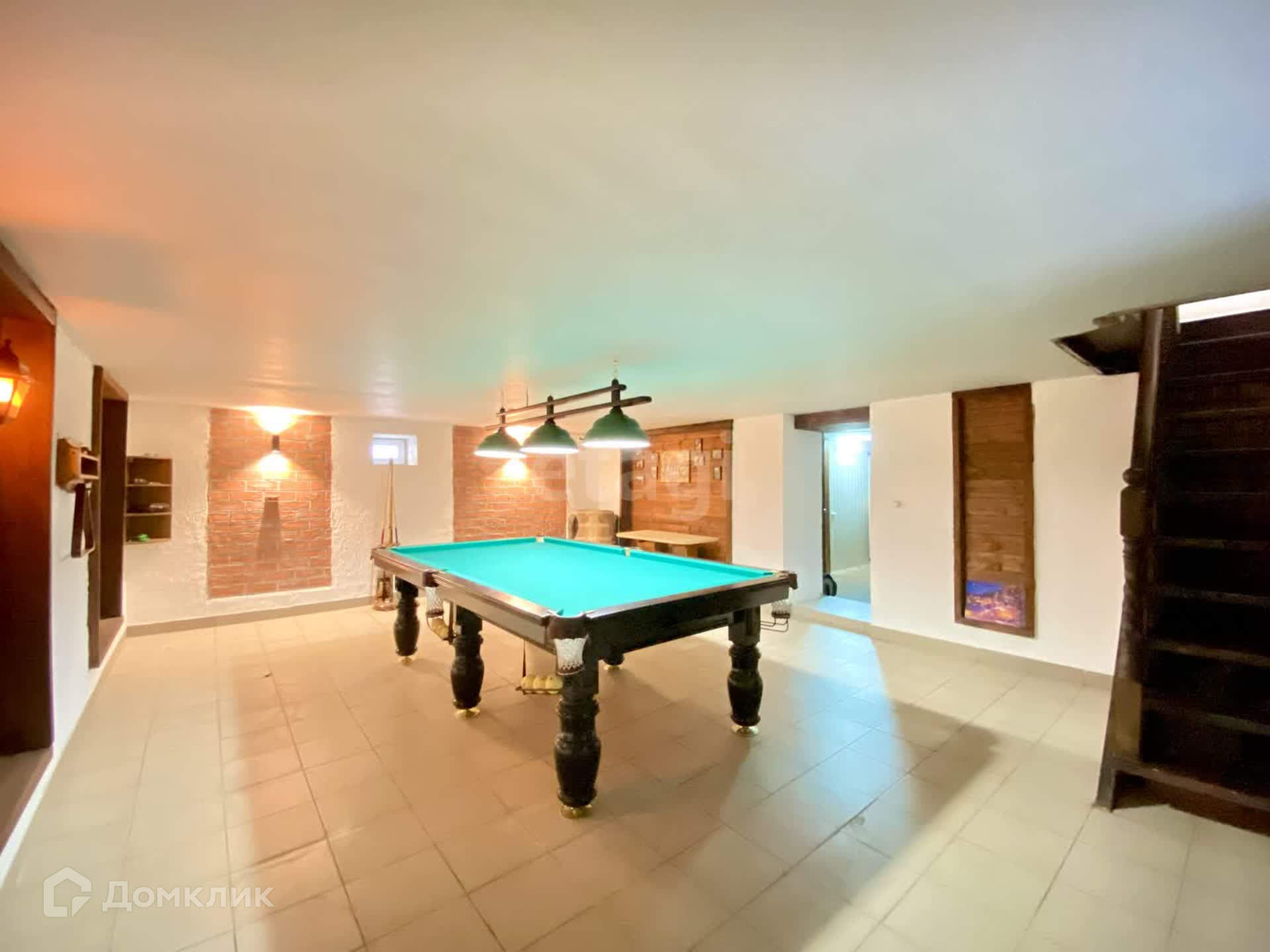 Планировка внутри: 5 жилых комнат, кладовая, 2 сан-узла, гостиная, просторные холл, гардеробная, котельная, бильярдная и спортивная комната, камин.