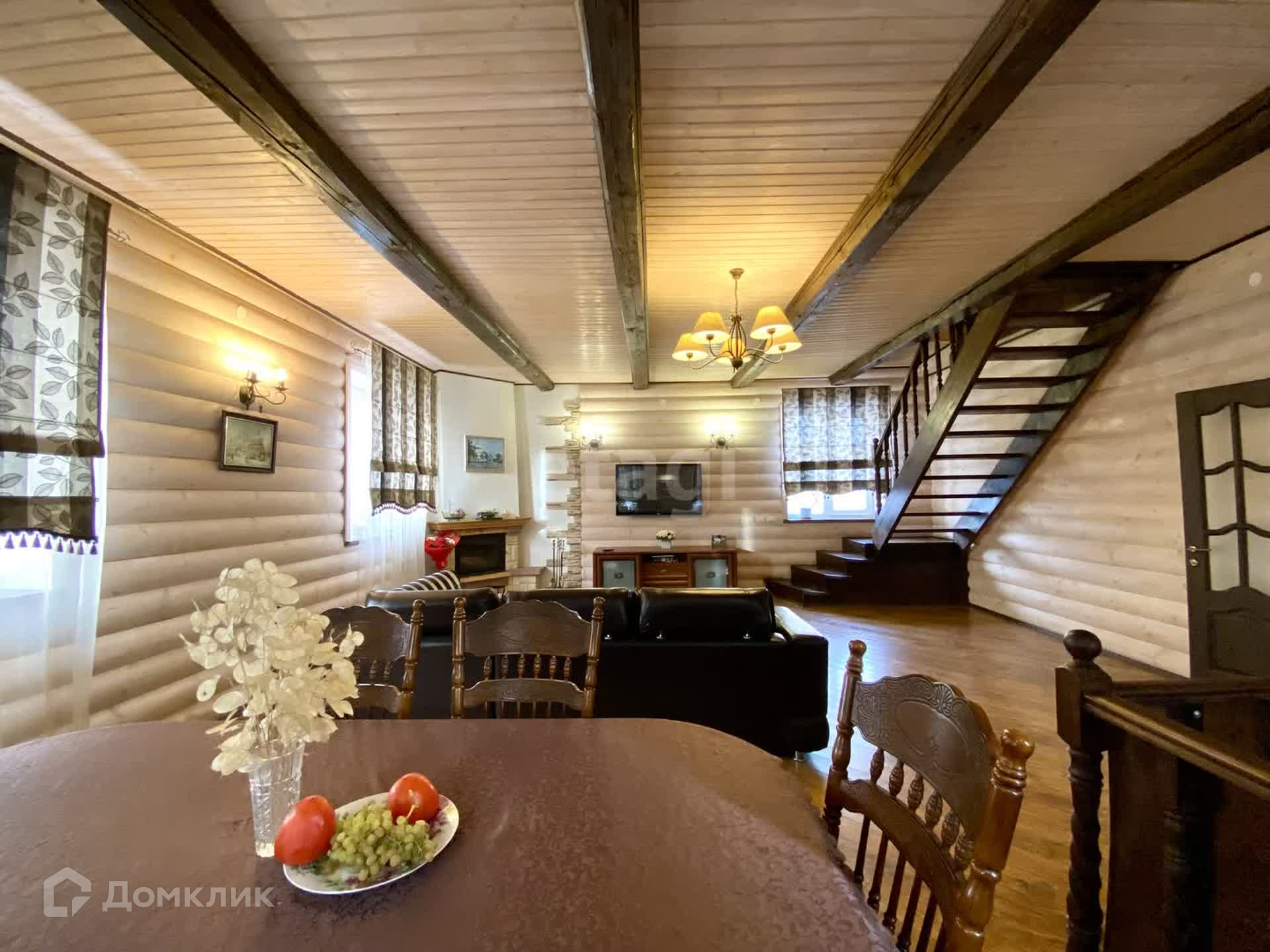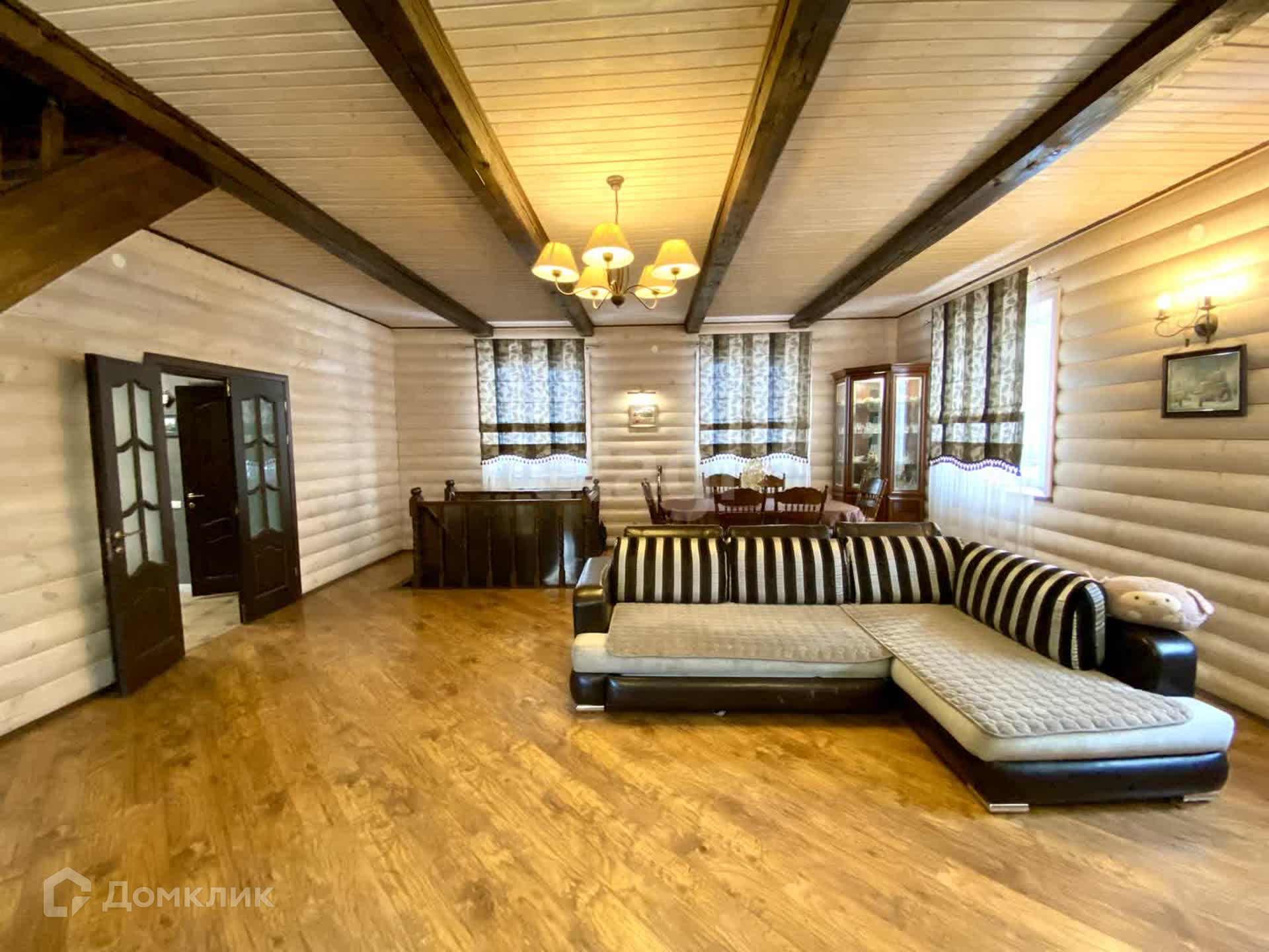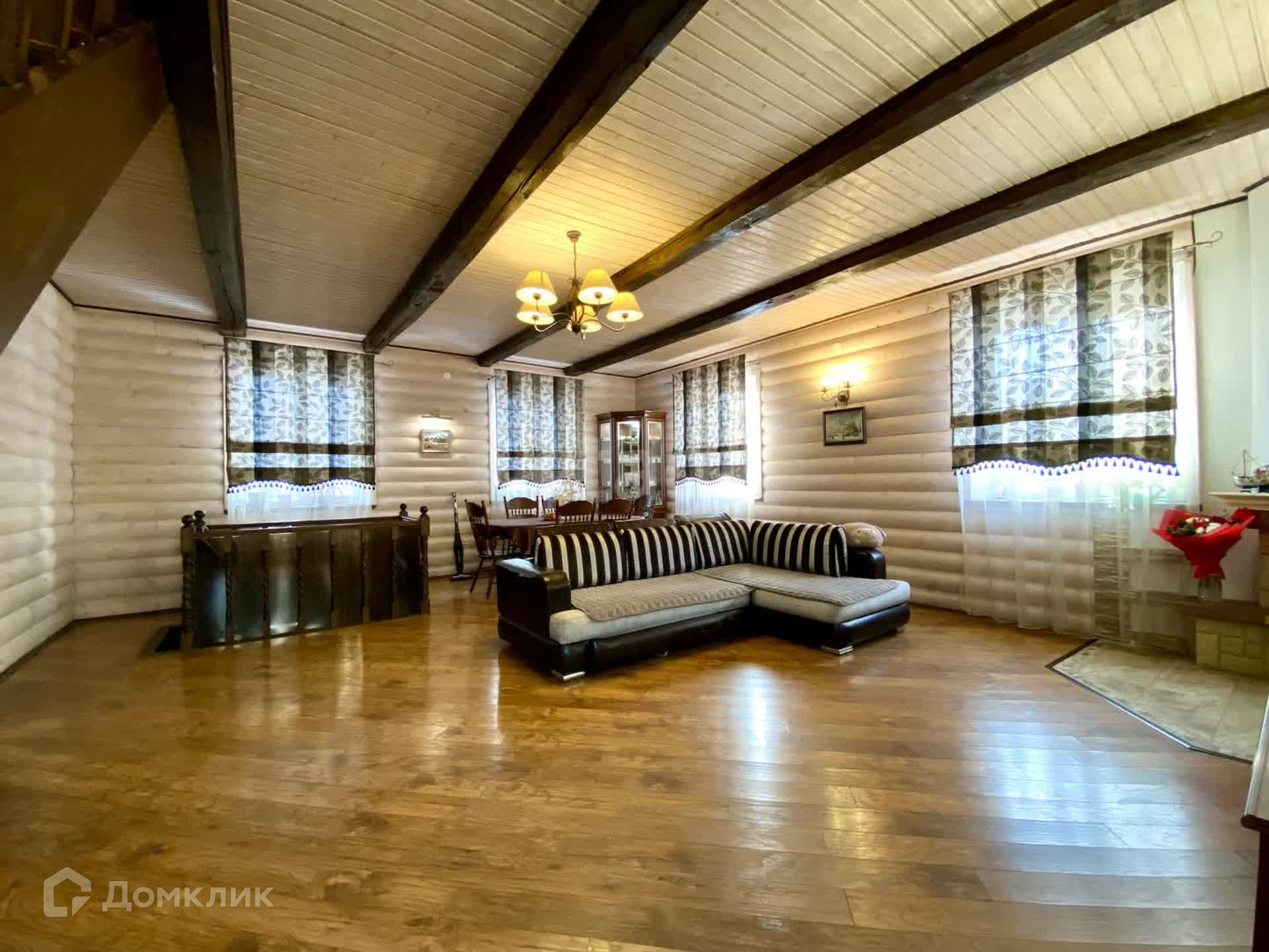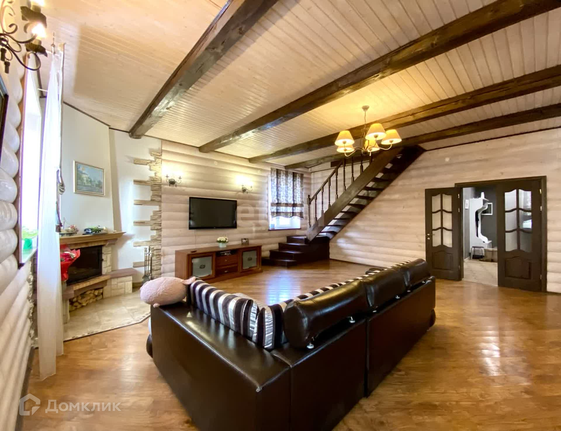 Планировка внутри: 5 жилых комнат, кладовая, 2 сан-узла, гостиная, просторные холл, гардеробная, котельная, бильярдная и спортивная комната, камин.