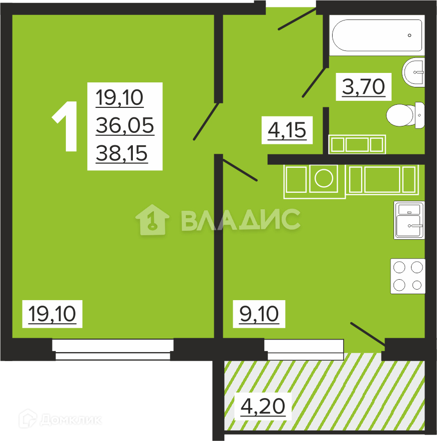 Балкон, лоджия 1 лоджия
