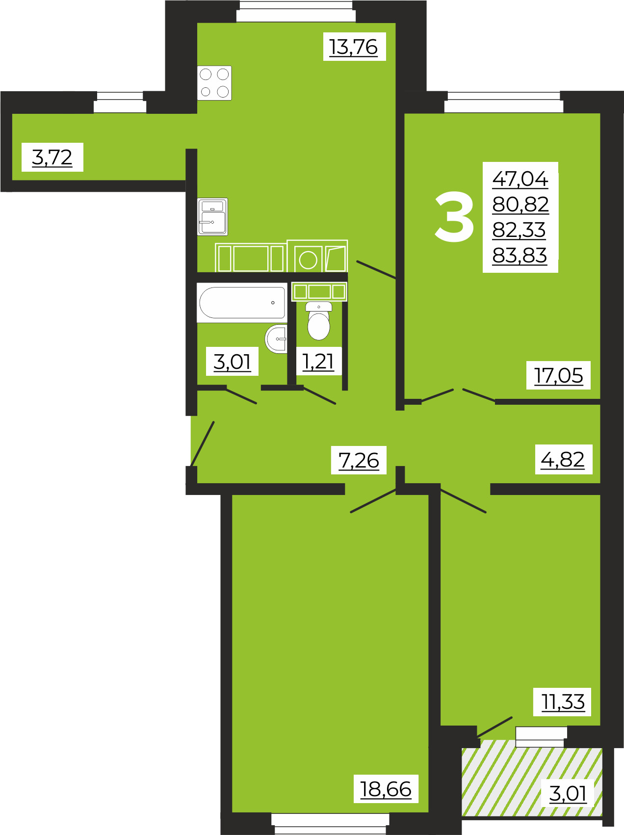 Общая площадь 83.83 м2