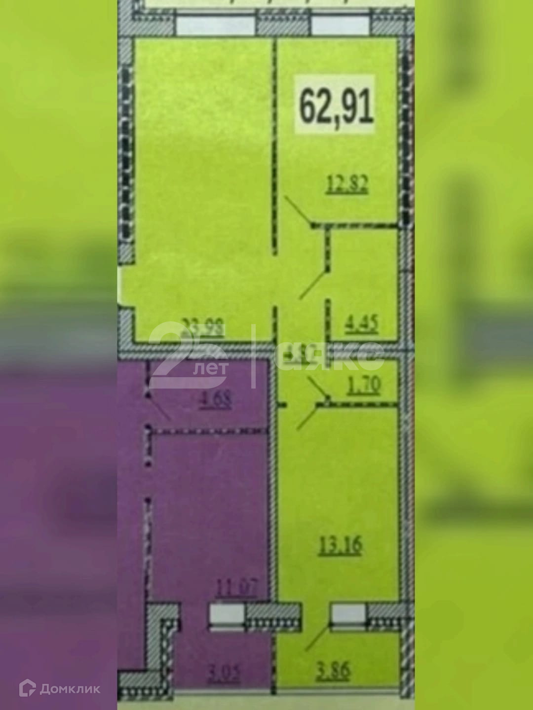 Общая площадь 62.41 м2