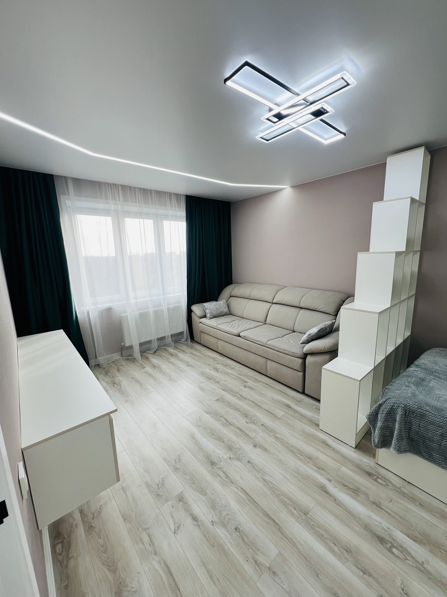 Продается уютная однокомнатная квартира с индивидуальным отоплением на пятом этаже. Квартира не угловая, выполнен качественный ремонт. На полу керамогранит, в комнате - ламинат. Натяжной потолок с LED-освещением. Балкон застеклен, утеплен, установлен теплый пол. Продается со всей мебелью и бытовой техникой - все новое и на гарантии.