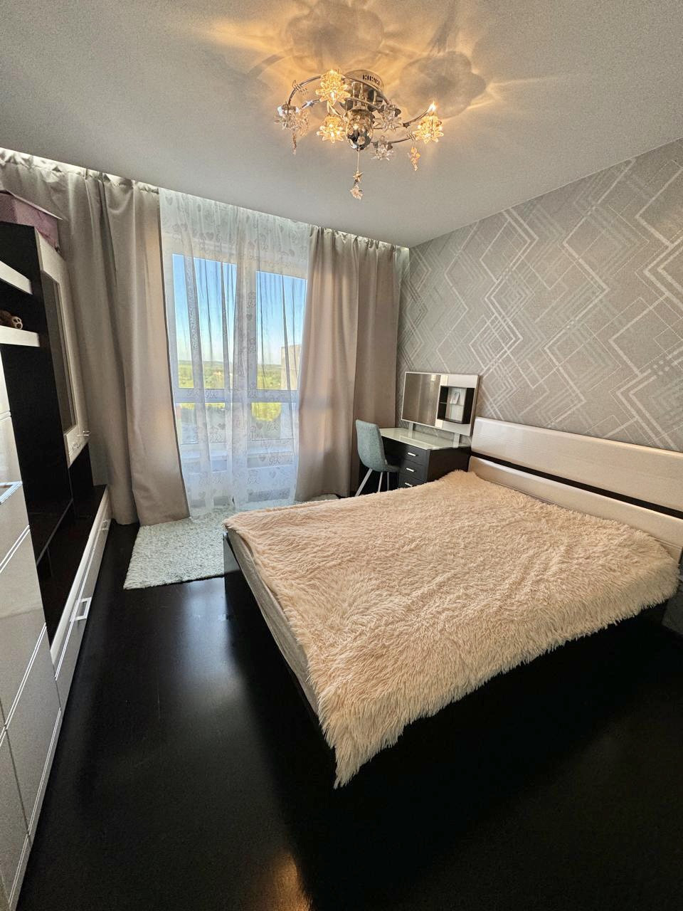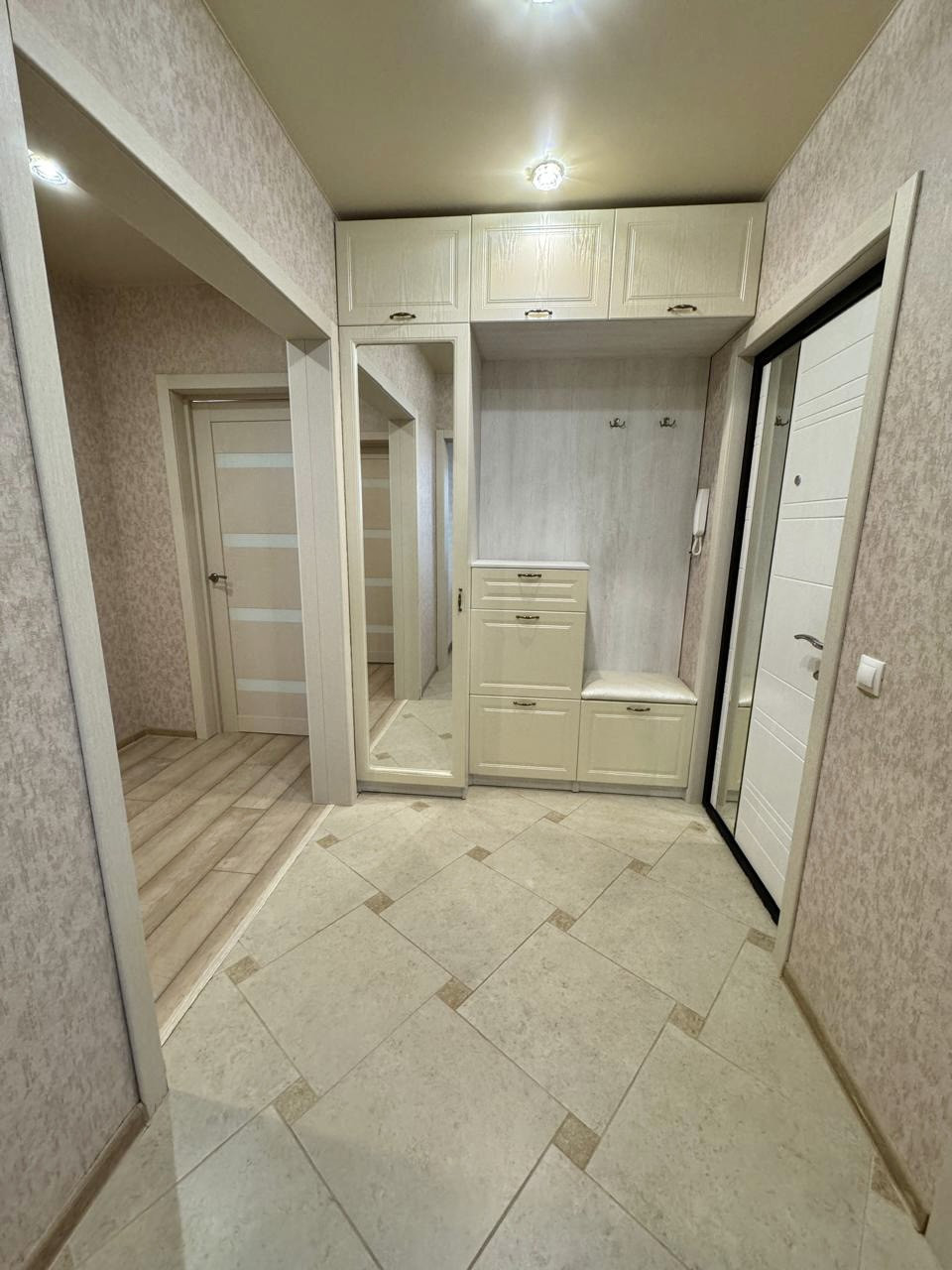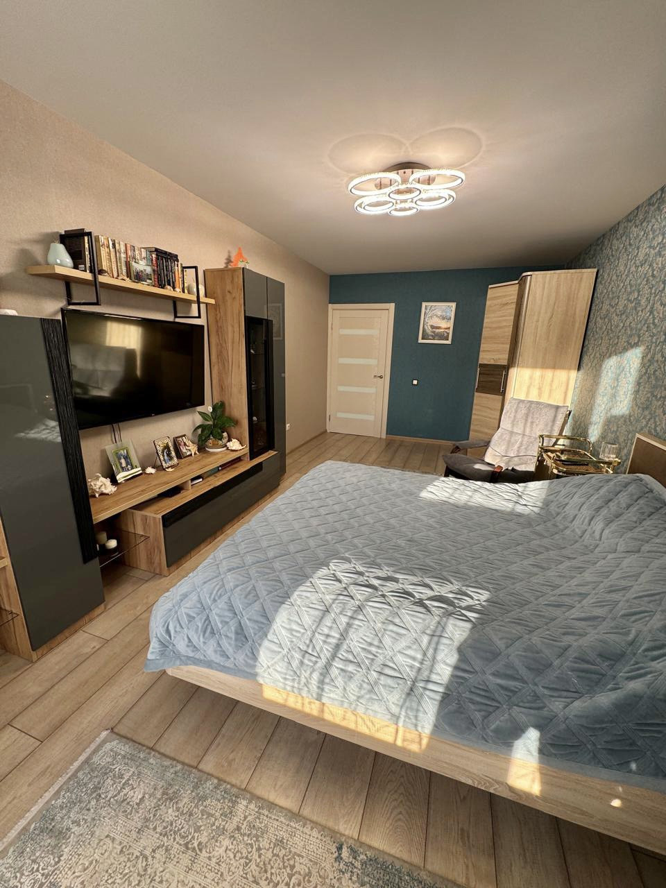 Квартира очень теплая, светлая, выполнен качественный современный ремонт, напольное покрытие-прихожая и кухня плитка, в комнатах ламинат, натяжные потолки, лоджия остеклена, санузел совмещенный в плитке, новым жильцам остается практически все что на фото (забирают в комнате стол, диван, кресло, в кухне стол со стульями, телевизор, стиральную машинку) соседи хорошие.