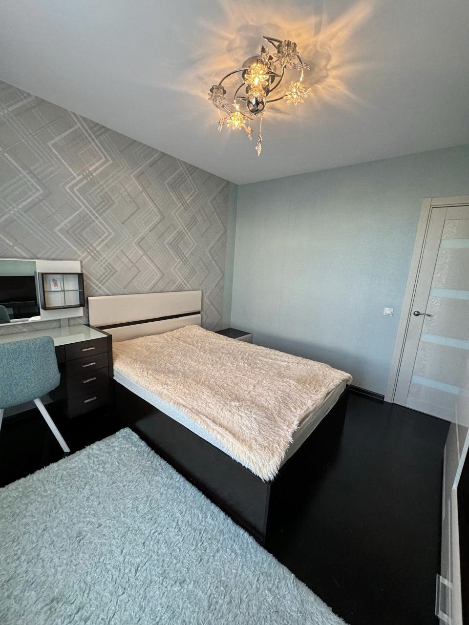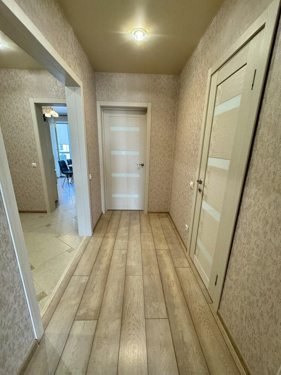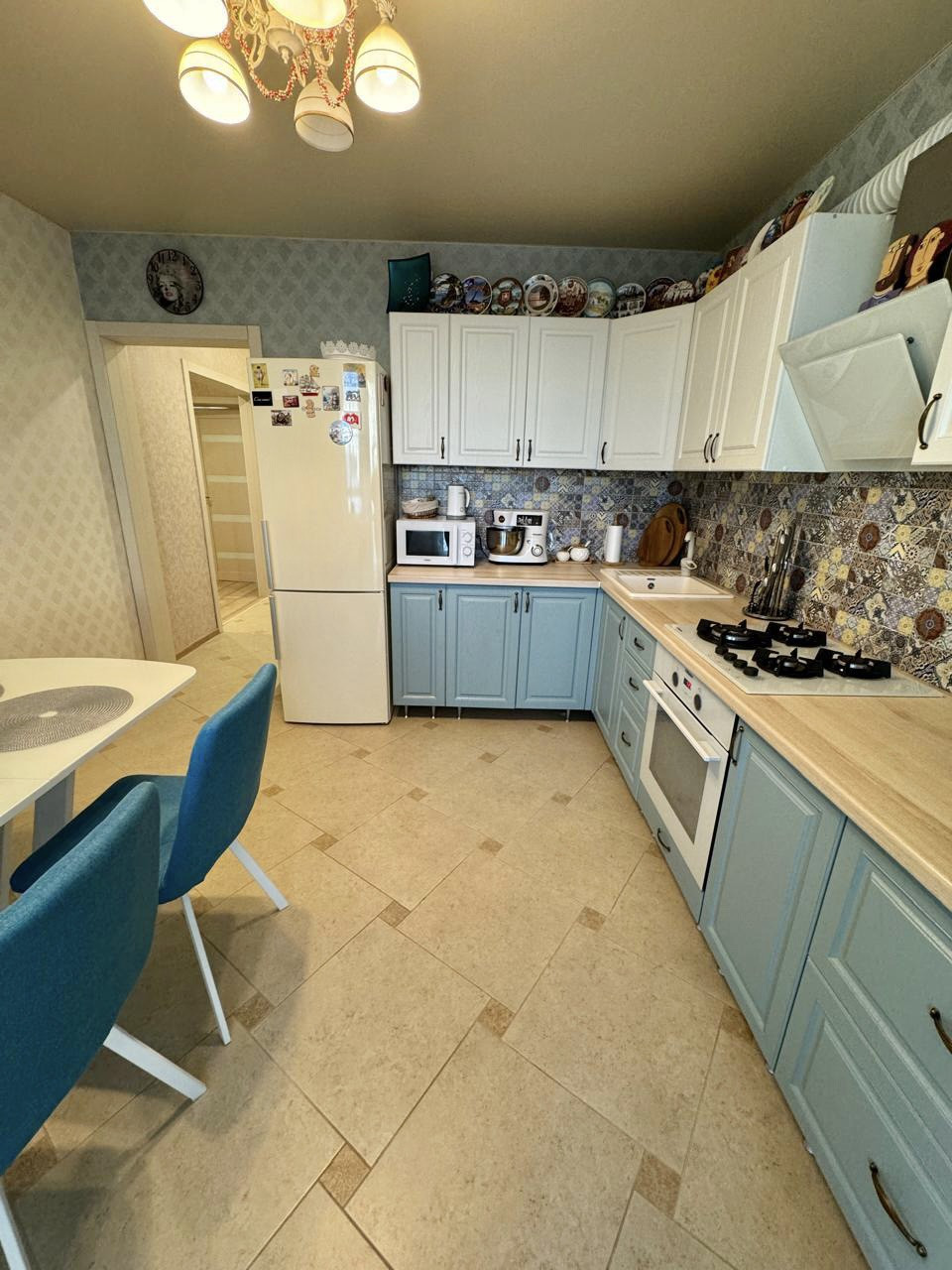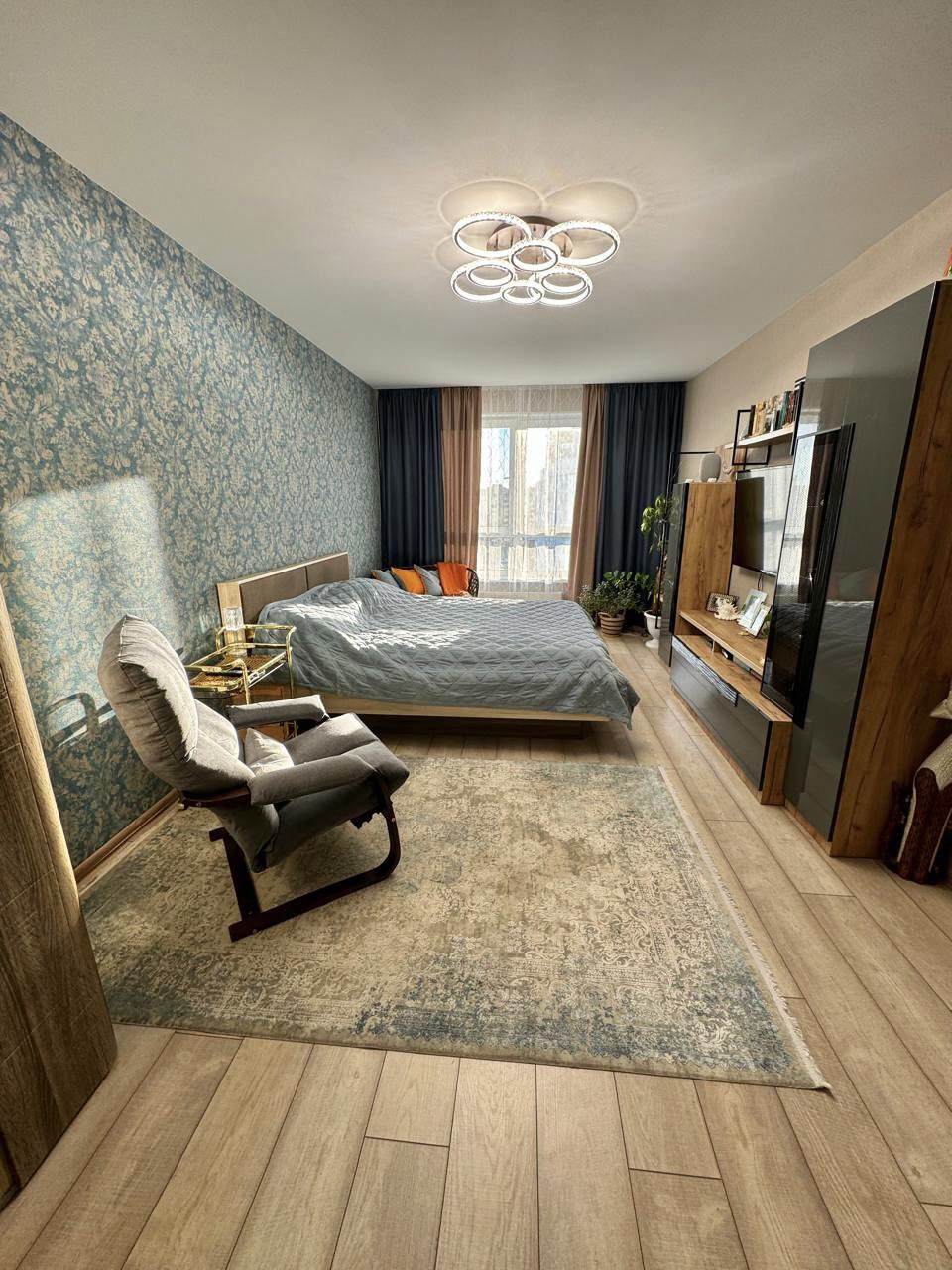 Квартира очень теплая, светлая, выполнен качественный современный ремонт, напольное покрытие-прихожая и кухня плитка, в комнатах ламинат, натяжные потолки, лоджия остеклена, санузел совмещенный в плитке, новым жильцам остается практически все что на фото (забирают в комнате стол, диван, кресло, в кухне стол со стульями, телевизор, стиральную машинку) соседи хорошие.