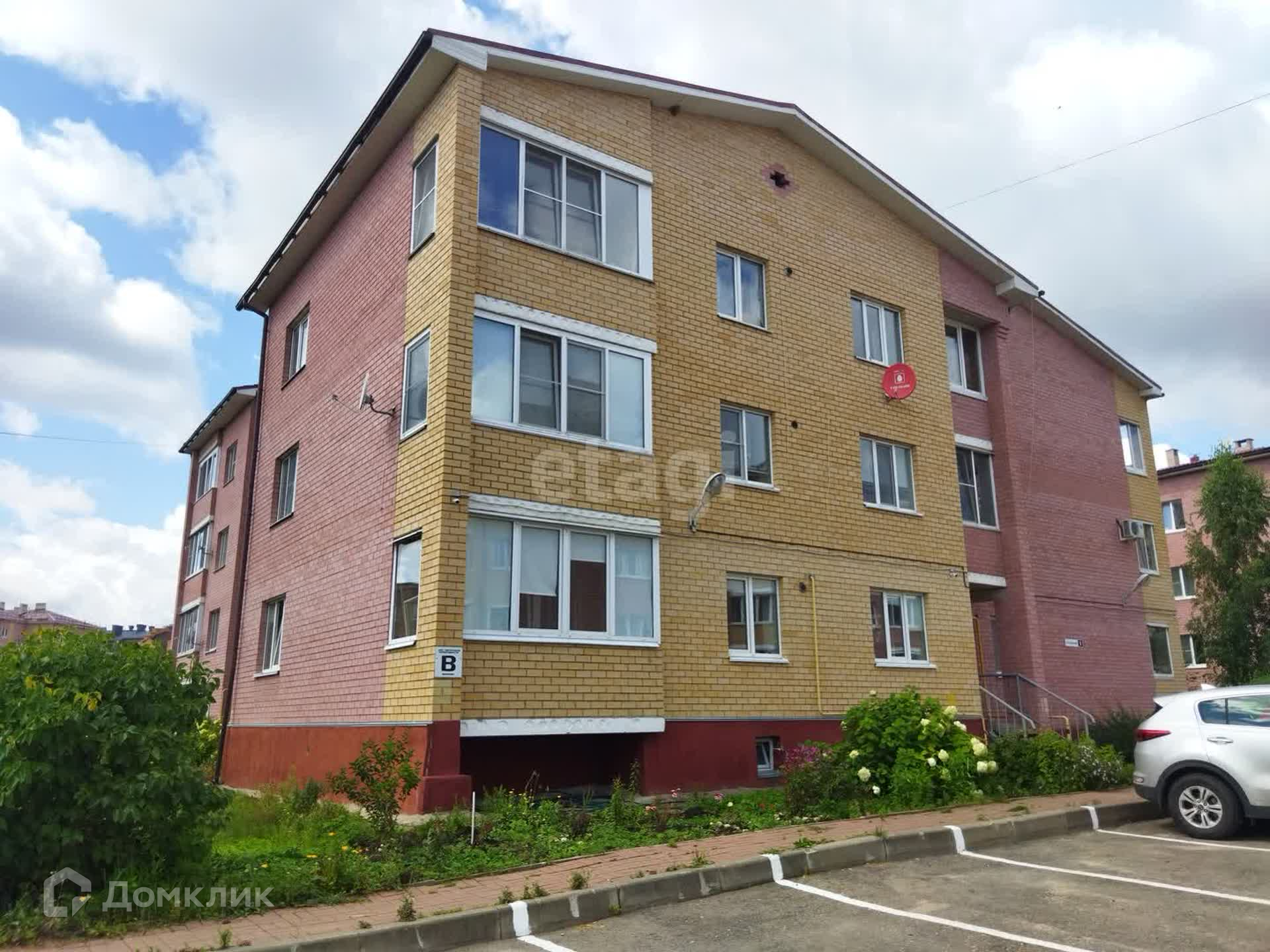 Подъезд к дому по ровной асфальтированной дороге, перед домом много парковочных мест.