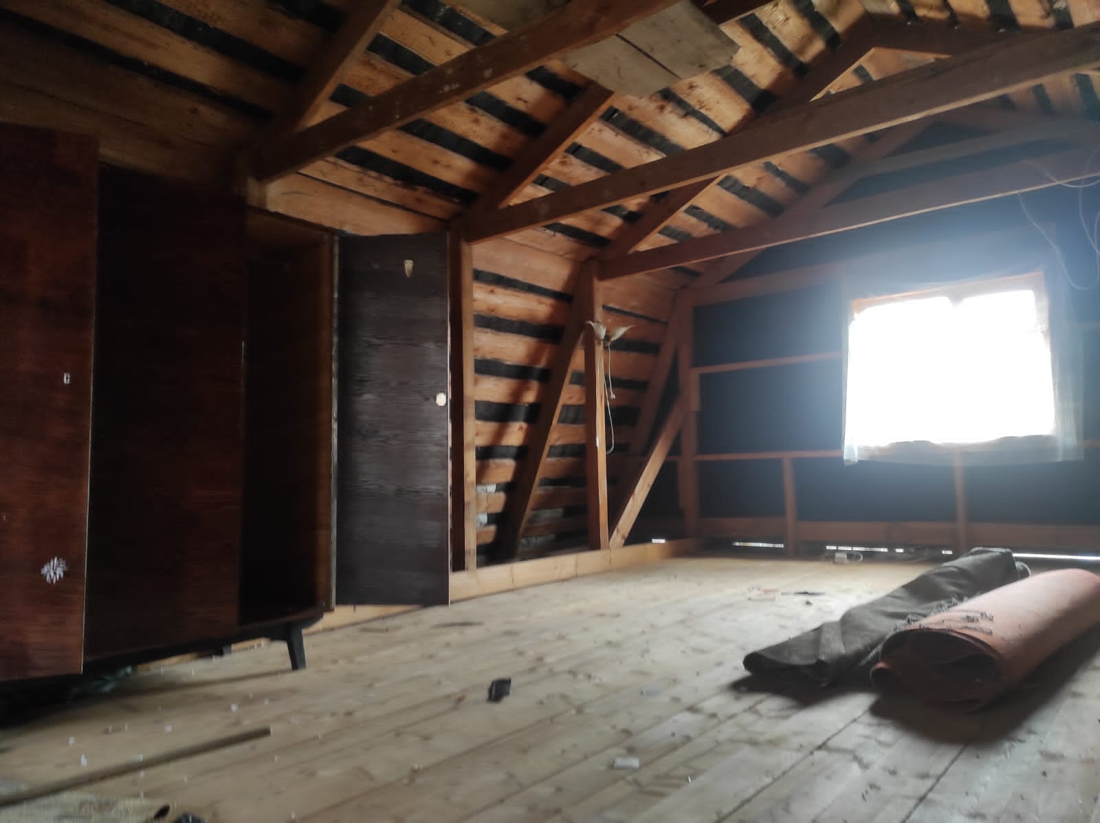 На участке 6 ,1 сотка 2-этажный дом из бруса 76 м2 мансарда без отделки.