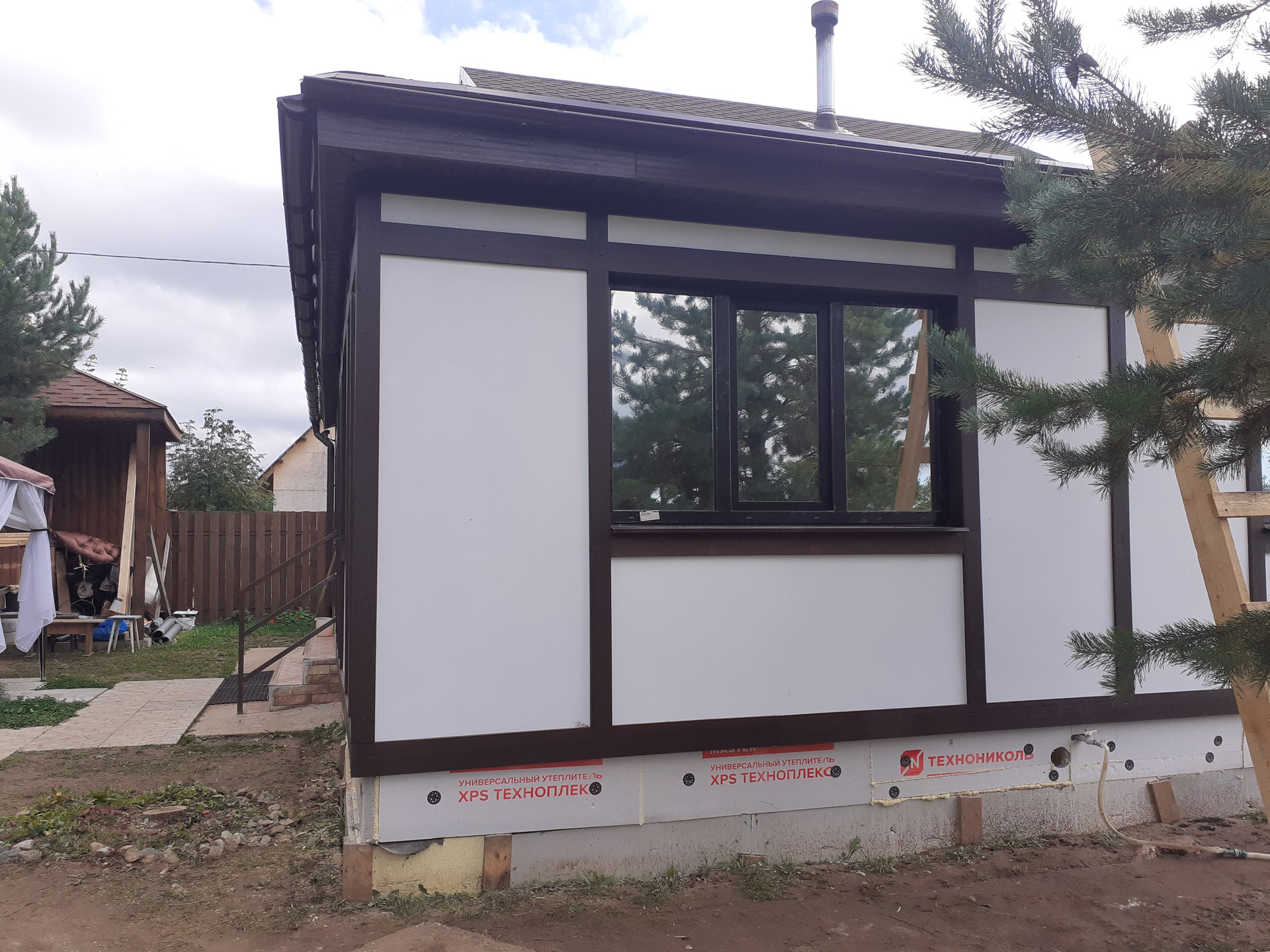 Внешняя отделка - ЦСП с покраской + крашеные калиброванные накладки(цвет шоколад).