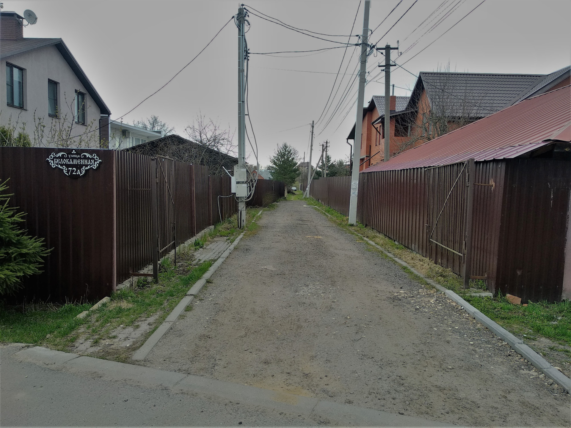 По границе участка: газ, электроэнергия, водопровод, асфальтированный подъезд.