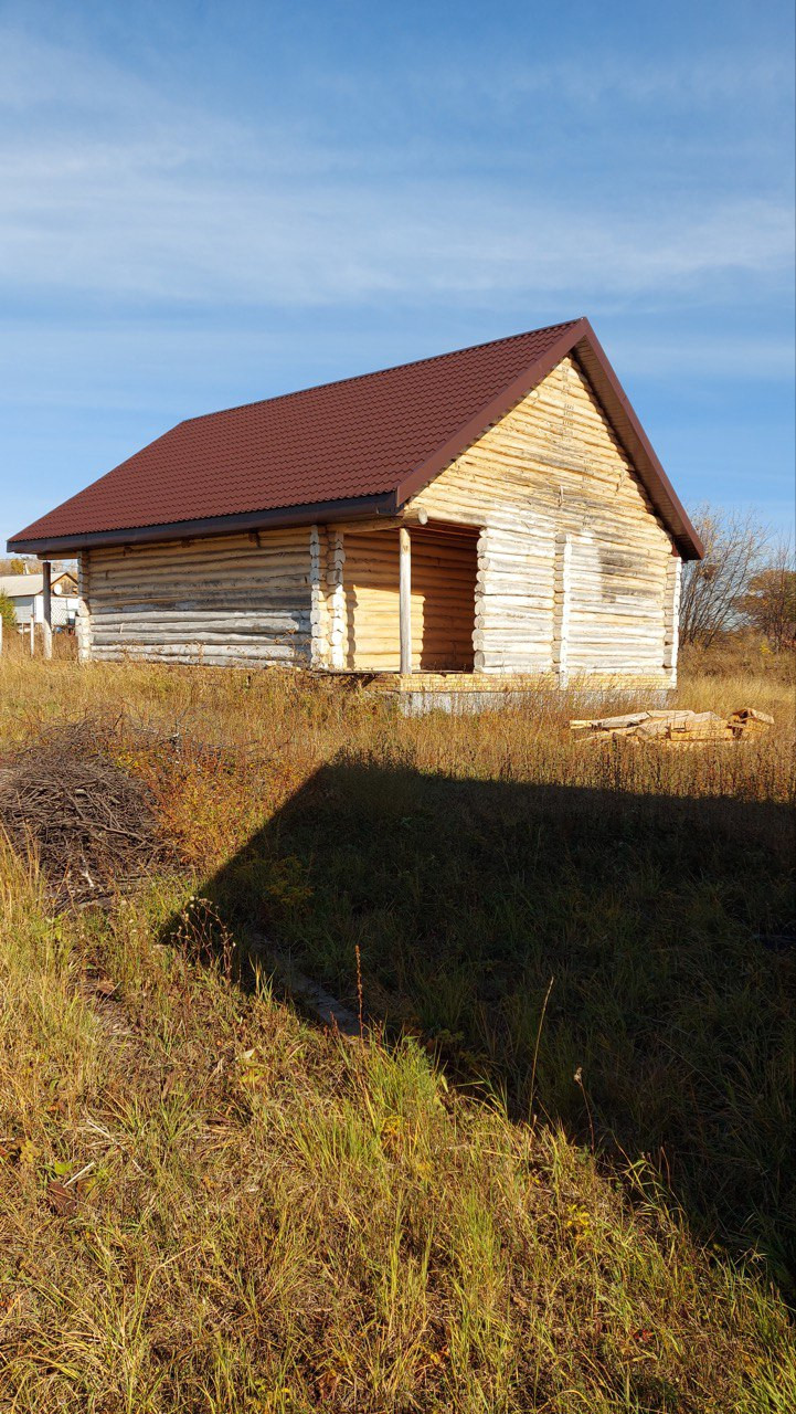 Про дом: липовый сруб размером 9*13 на ленточном фундаменте под крышей из профнастила. Прекрасный вариант для тех, кто хочет жить в доме из экологичного материала. В доме есть фундамент под русскую печь. Планировался двухэтажный, второй этаж мансардный с двумя просторными комнатами. На первом хотели сделать: кухня, гостиная, спальня, санузел. Из кухни выход на террасу. Есть проект, разрешение на строительство получено.