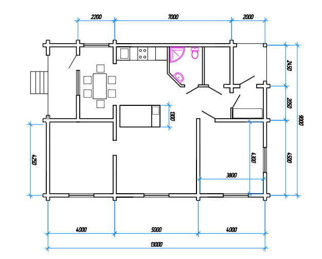 На фото предполагаемый план первого этажа, берите его за основу, а можете обустроить всё на свой вкус.