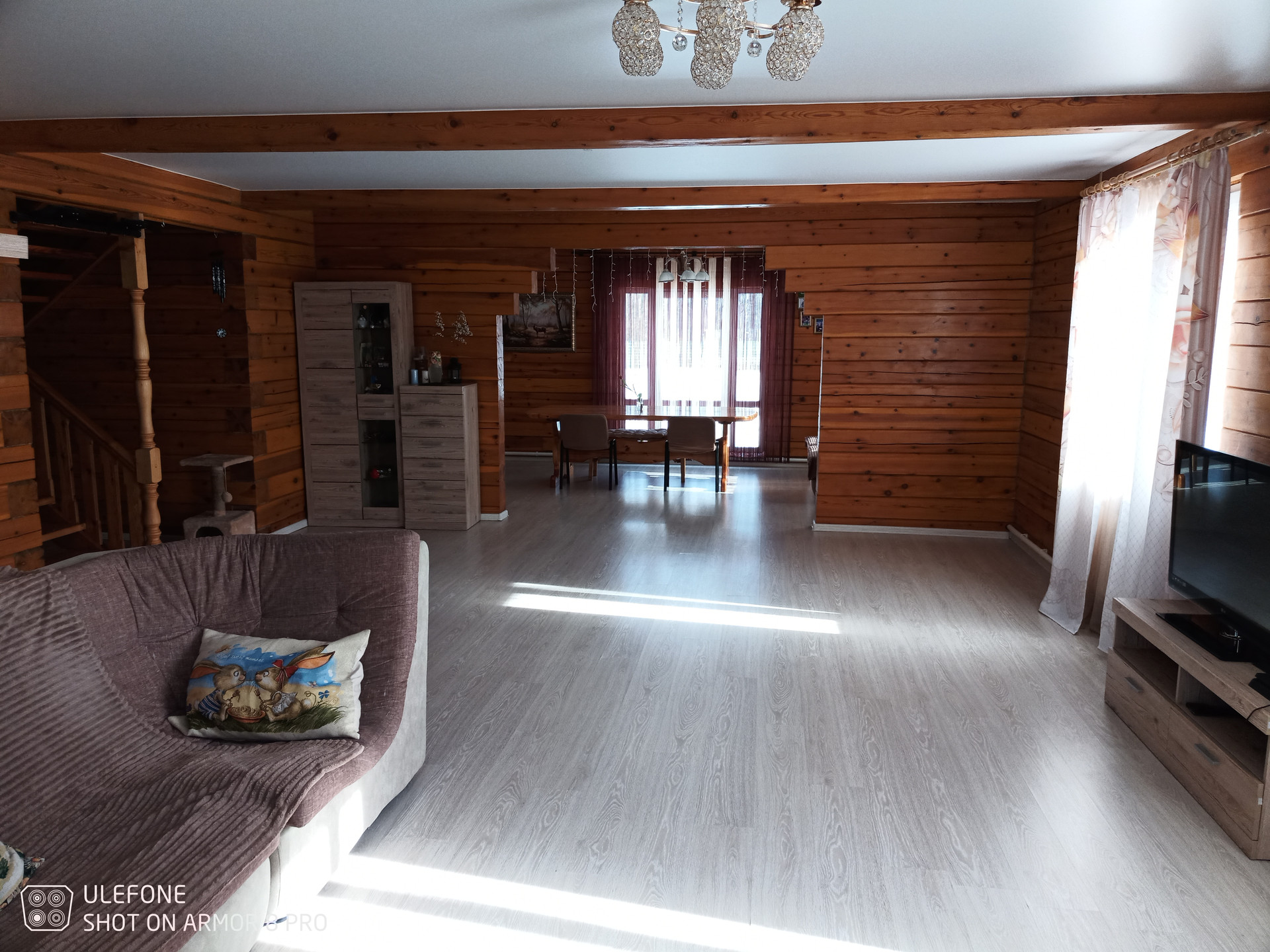 На первом этаже просторная, большая гостинная, санузел, гардеробная. На втором этаже 5 спальных комнат и санузел.