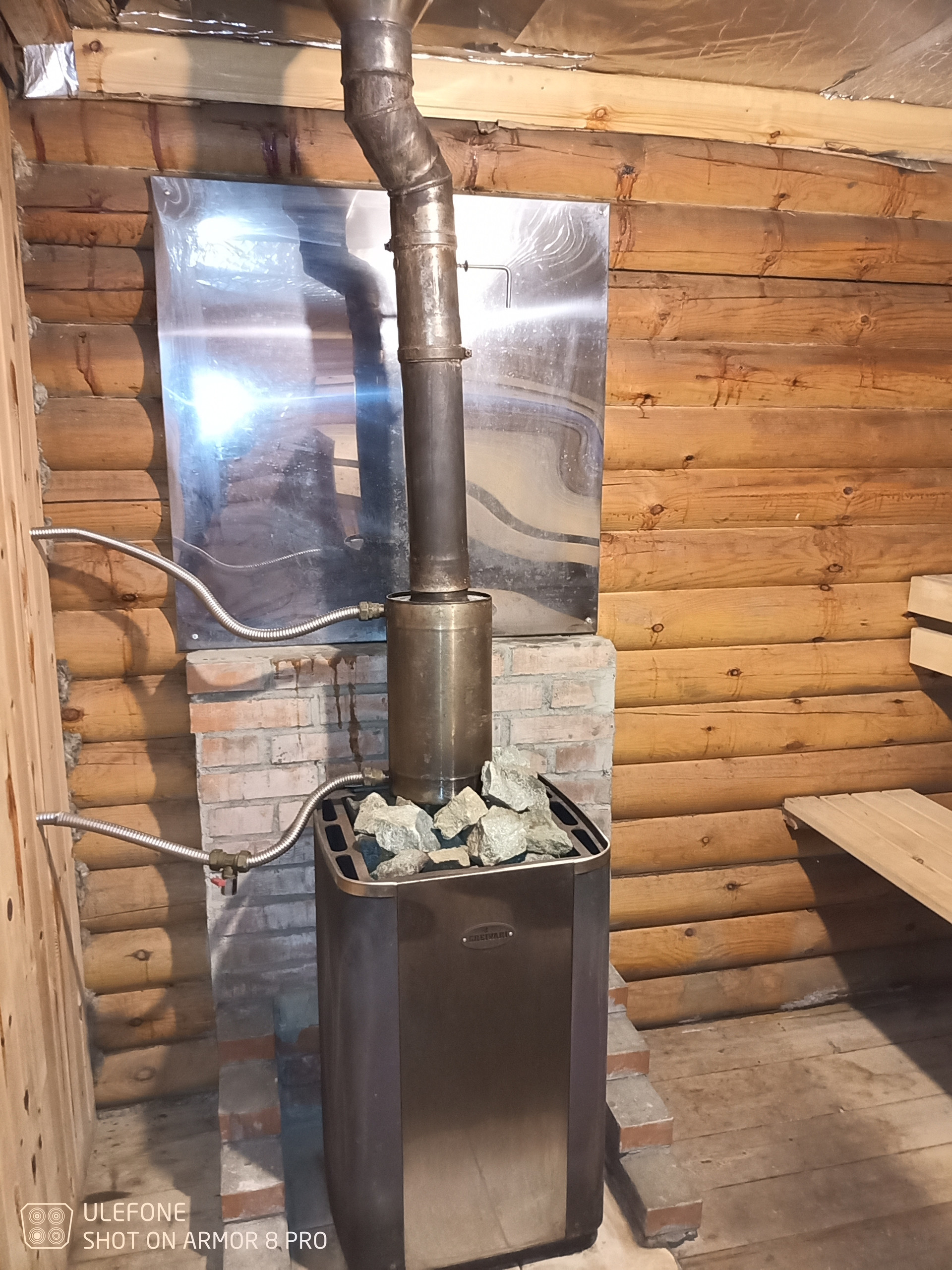 Гараж отапливаемый на две машины с автоматическими воротами(50кв.м).Мансарда 50м2..Дом газифицирован(котел итальянский Baxi).