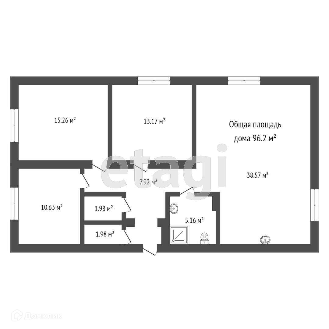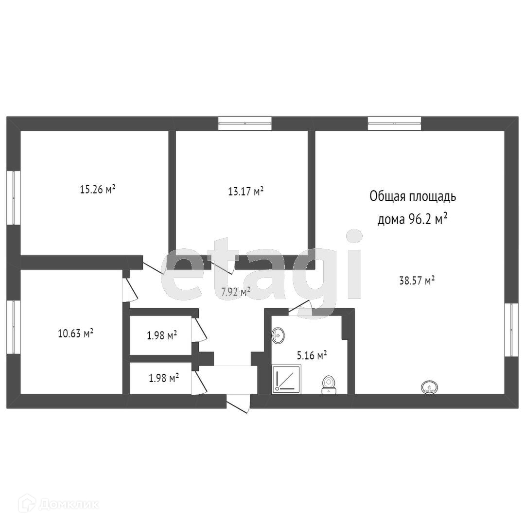 Площадь дома составляет 104,4м2, включает в себя 3 спальни, большую кухню-гостинную, котельную и два сантехнических узла
