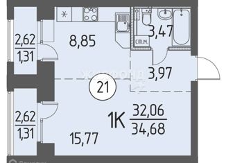Общая площадь: 34.68 м2