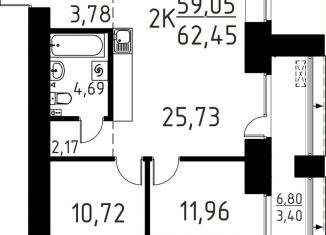 2-ком. квартира на продажу, 62.5 м2, улица Василия Кандинского, 6