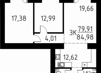 Трехкомнатная квартира на продажу, 82.1 м2, улица Василия Кандинского, 6