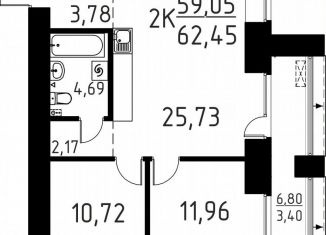 Общая площадь: 62.5 м2