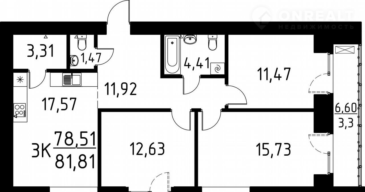 Общая площадь 81.8 м2