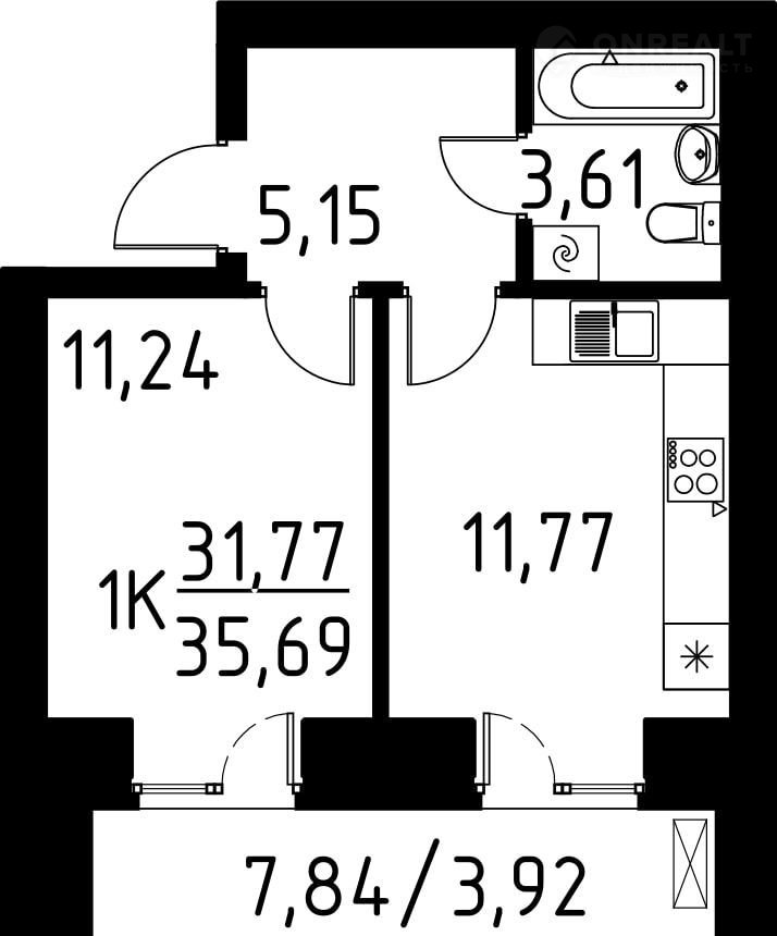 Общая площадь 35.7 м2