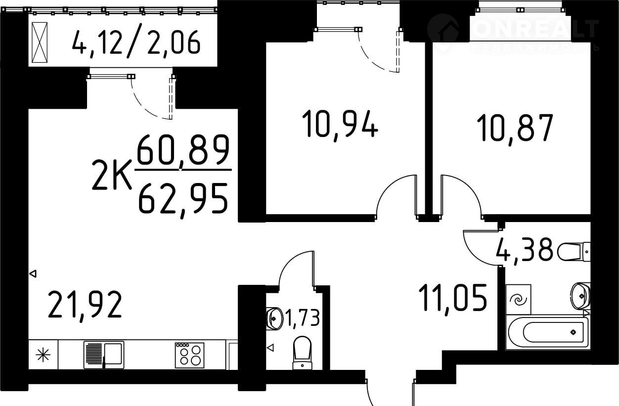 Общая площадь 63 м2