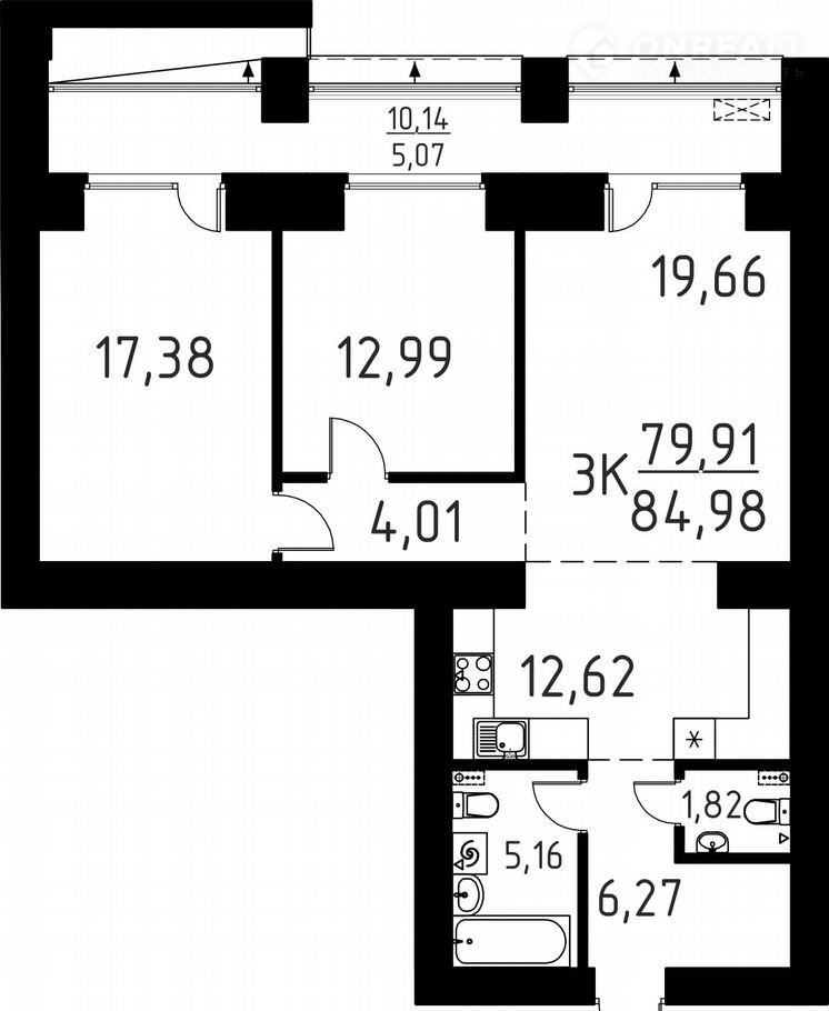 Балкон, лоджия 1 лоджия