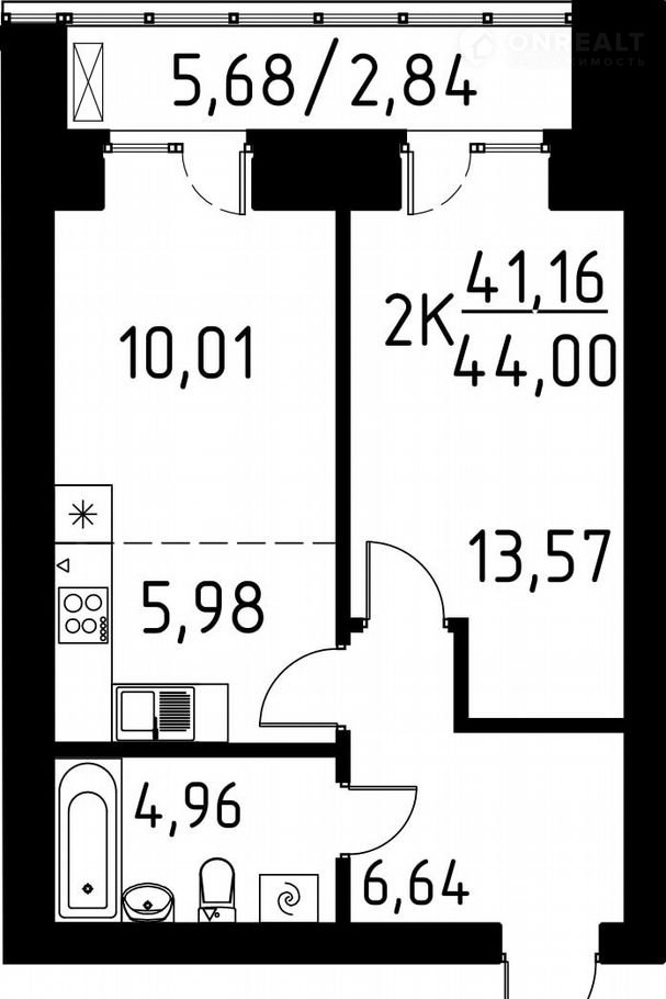 Общая площадь 44 м2