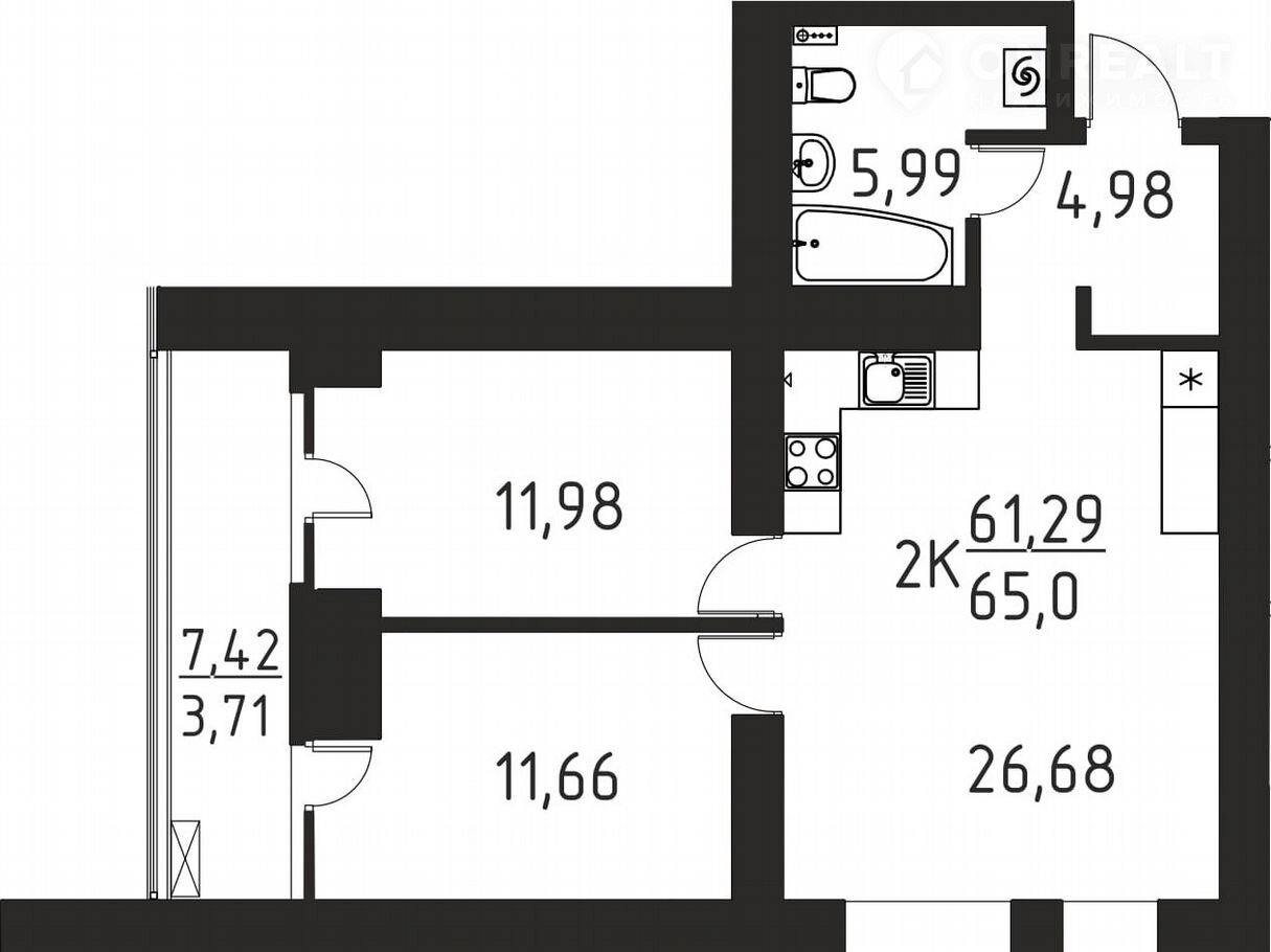 Балкон, лоджия 1 лоджия