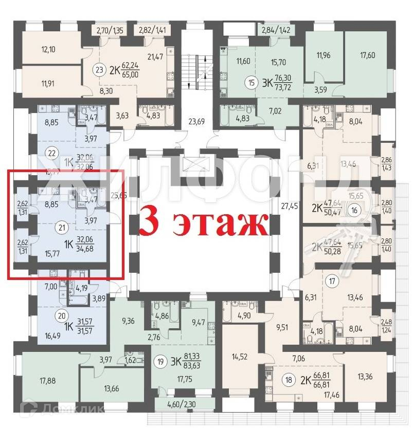 Общая площадь 34.68 м2