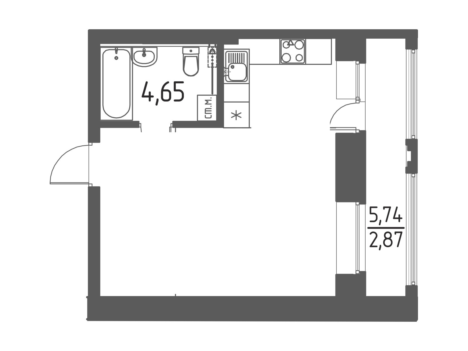 Общая площадь 34.79 м2
