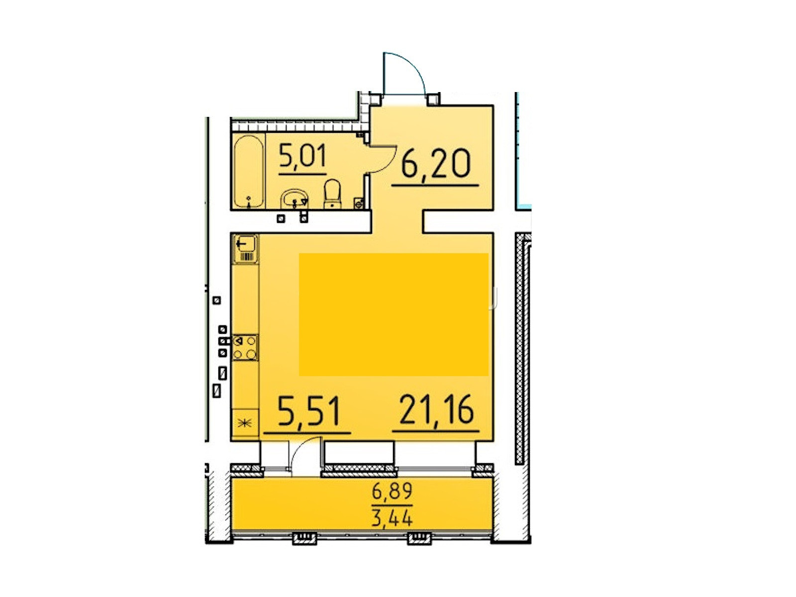 Балкон, лоджия 1 балкон