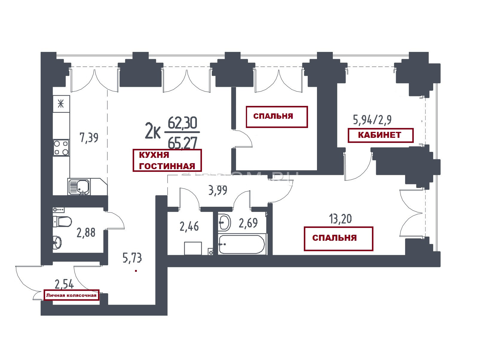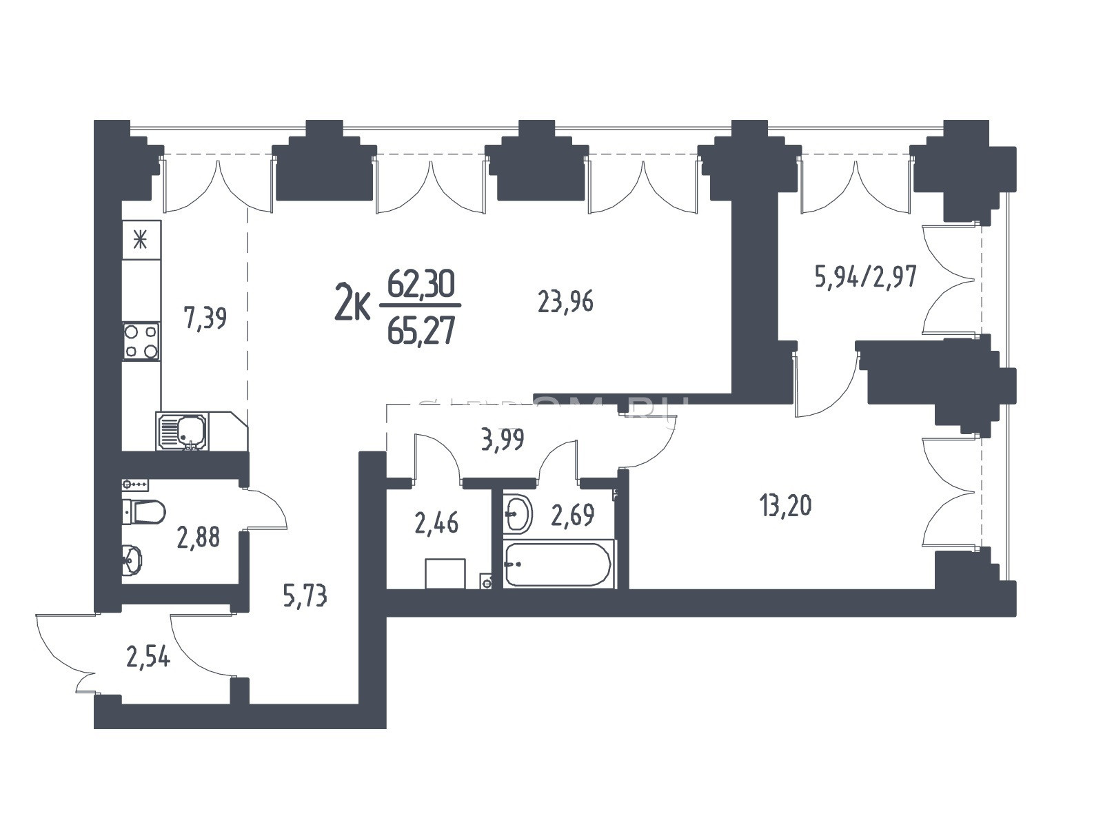 Общая площадь 63.2 м2