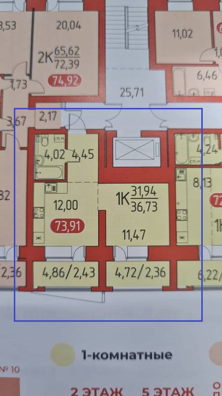 Общая площадь 36.73 м2