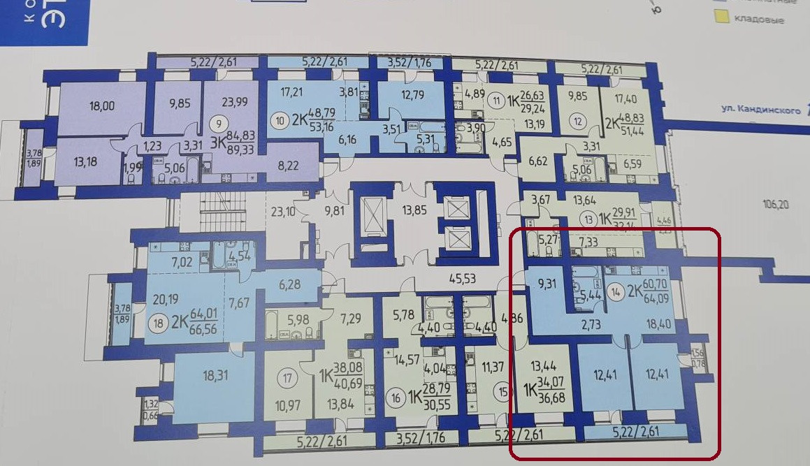 2-комнатная квартира, 64.09 м2, этаж 2 / 9, на продажу в деревне Кисловке, улица Василия Кандинского, 2