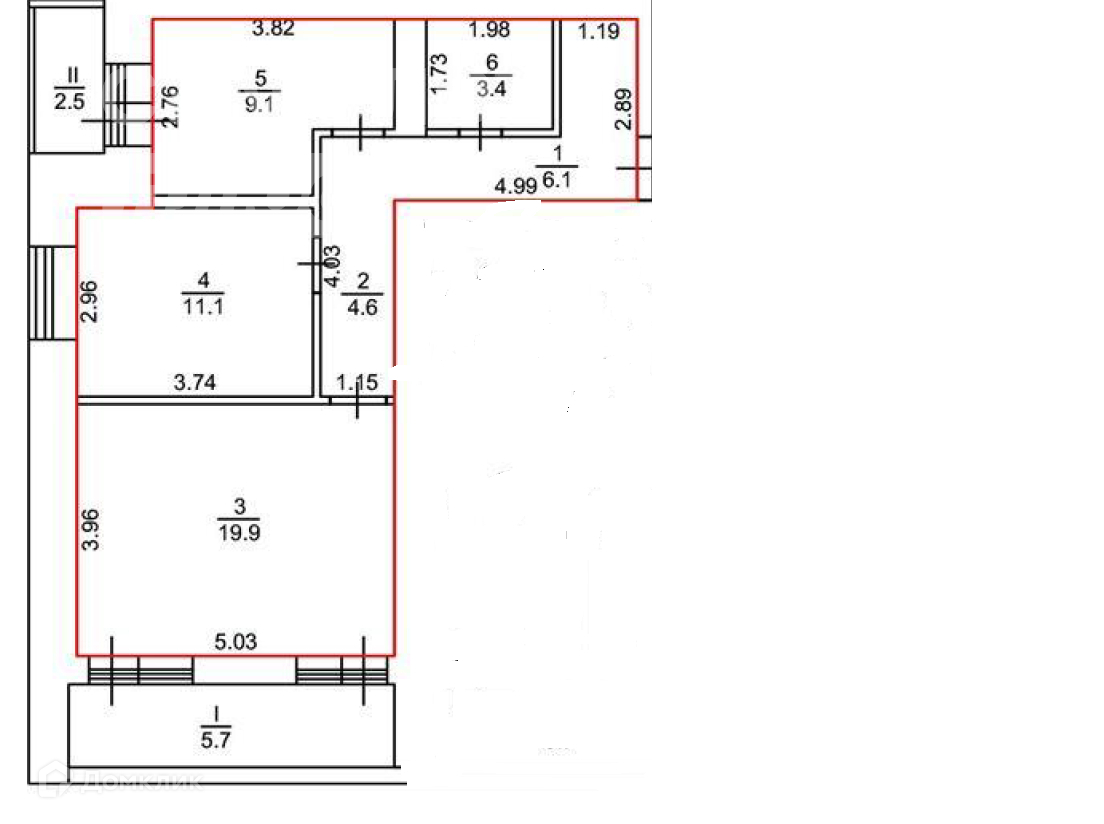 Балкон, лоджия 1 балкон