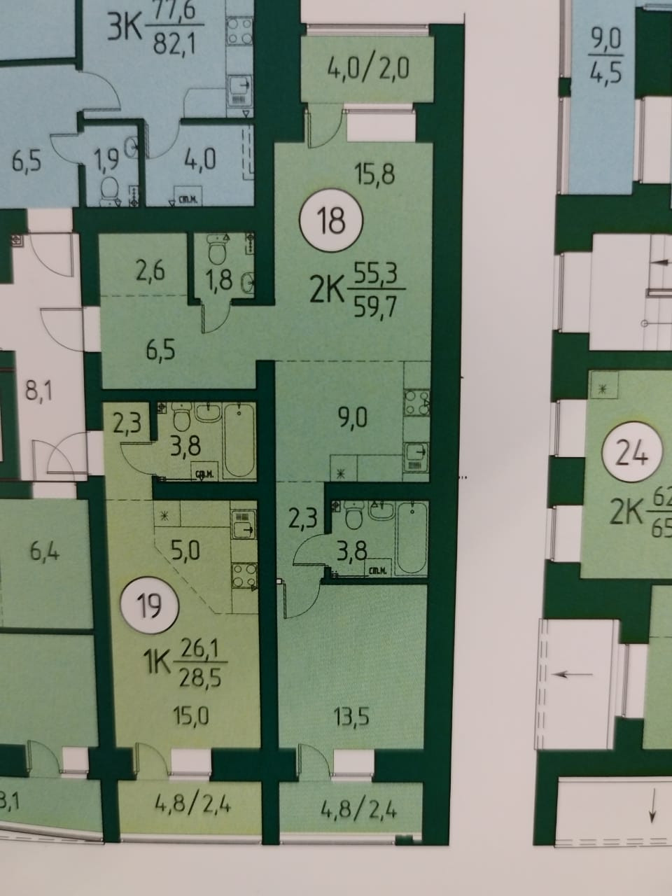 Общая площадь 59.7 м2