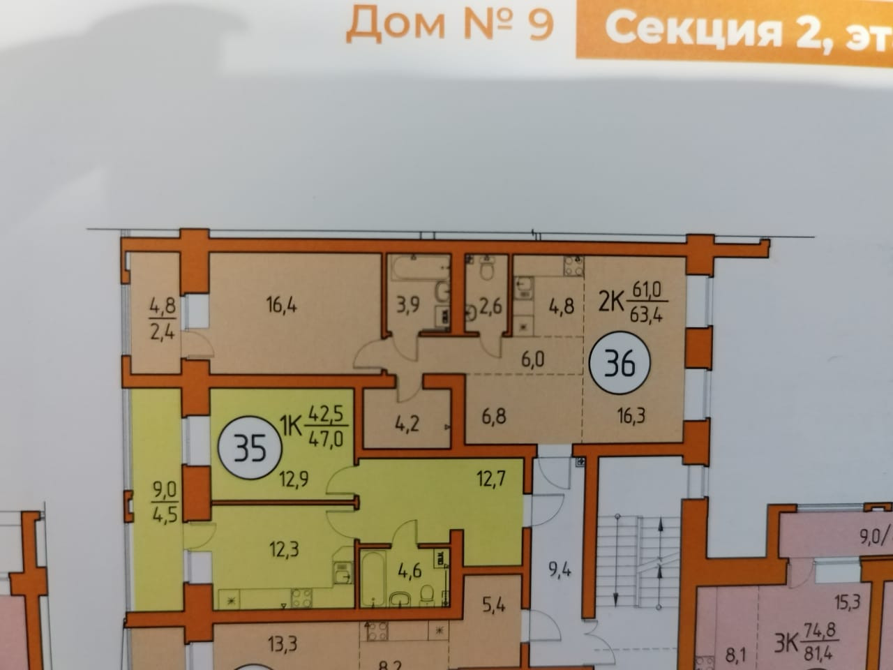 Общая площадь 63.4 м2