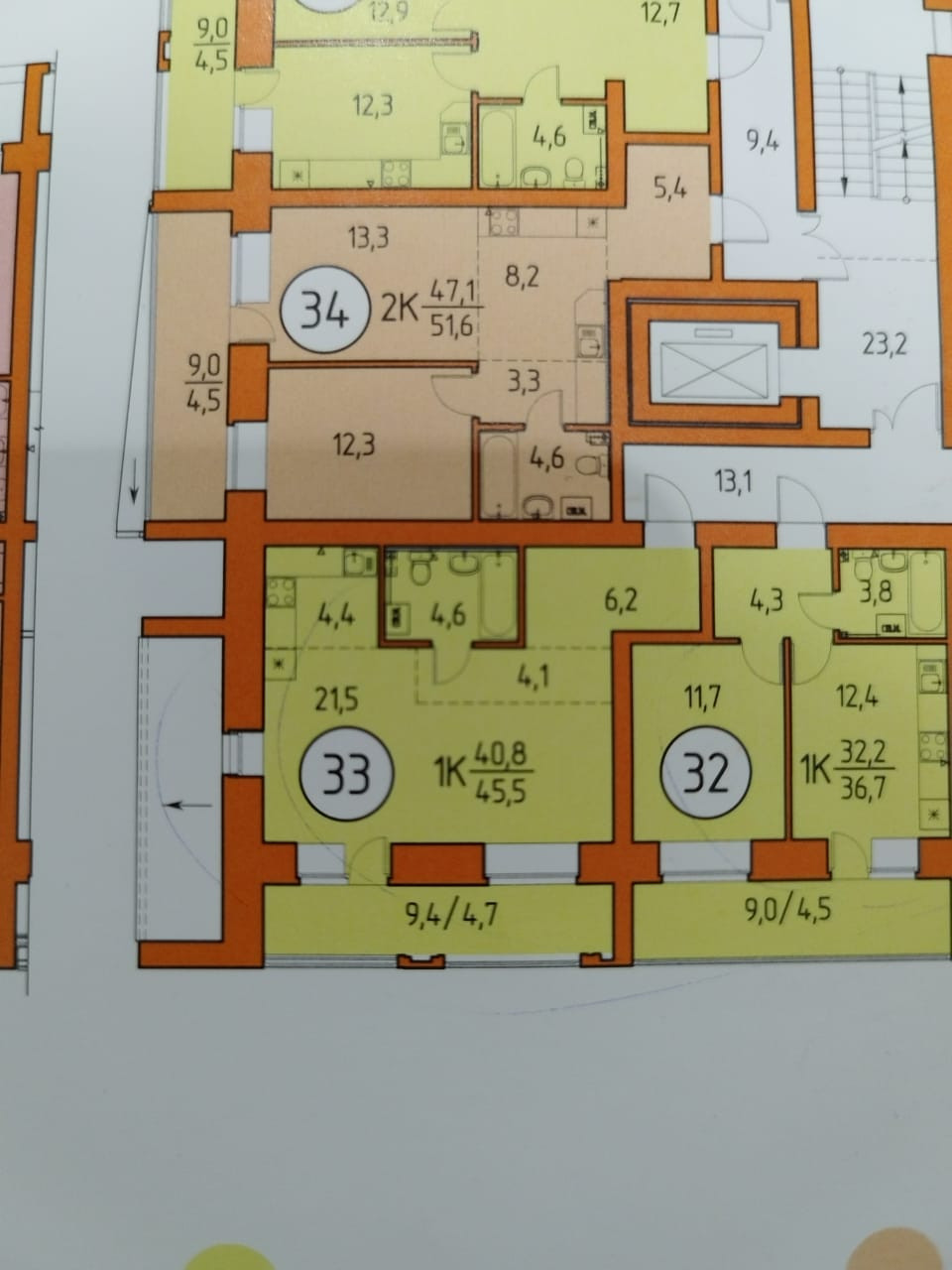 Общая площадь 45.5 м2