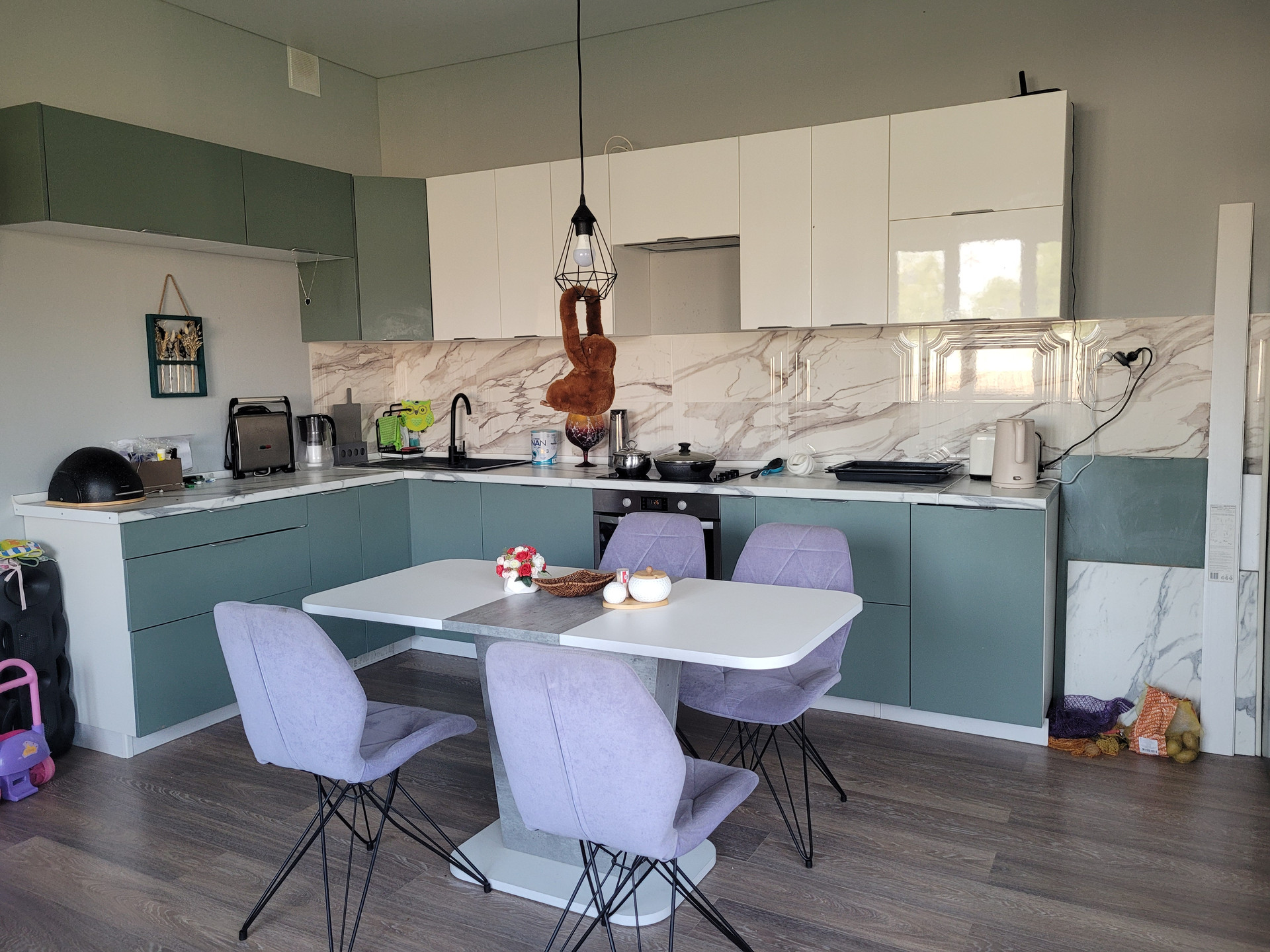 Дом для круглогодичного проживания, живём уже почти полтора года с 3 детьми. Отопление - конвекторы + шикарная дорогая печь. Зимой очень тепло, дом хорошо утеплен. На первом этаже - сан узел с ванной, бойлерная/сушильная/гладильная, большая кухня/гостиная, спальня. Под лестницей есть место, где можно хранить различные инструменты и тд. Второй этаж - 3 спальни, сан узел с душевой кабиной, гардеробная. Из мебели остаётся кухонный гарнитур со встраиваемой техникой (посудомоечная машина, варочная панель, духовой шкаф, вытяжка, раковина и смеситель), диван в гостиной, сантехника в сан узлах, гардеробная. Остальная мебель обсуждается за доп плату.
