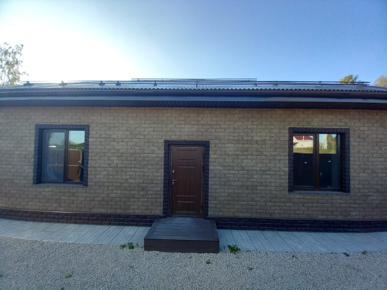 Дом оснащен  коммуникациями: электричество, скважина, септик (Газоснобжение проекте для подвода к поселку). Окна полностью остеклены качественной продукцией. Стены- блок, утеплитель и декоративные плиты под кирпич. Крыша покрыта металлочерепицей, что гарантирует долговечность и надежность. Вся территория вокруг дома аккуратно выровнена, оборудовано парковочное место.  Есть возможность сделать пристройки на свой вкус.