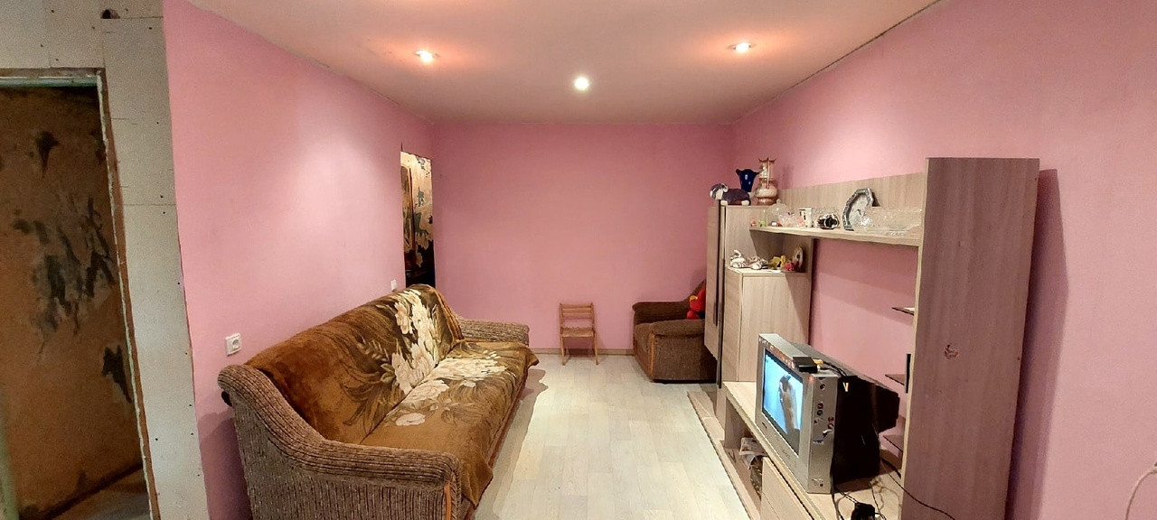 В квартире был запланирован ремонт с несущественной перепланировкой: комнаты разделили, а одну из них совместили с кухней, заменили проводку, входную дверь на металлическую. В кухне-гостинной установлены натяжные потолки, пластиковые стеклопакеты, настелен линолеум, остальные помещения Вы сможете оформить по своему вкусу.