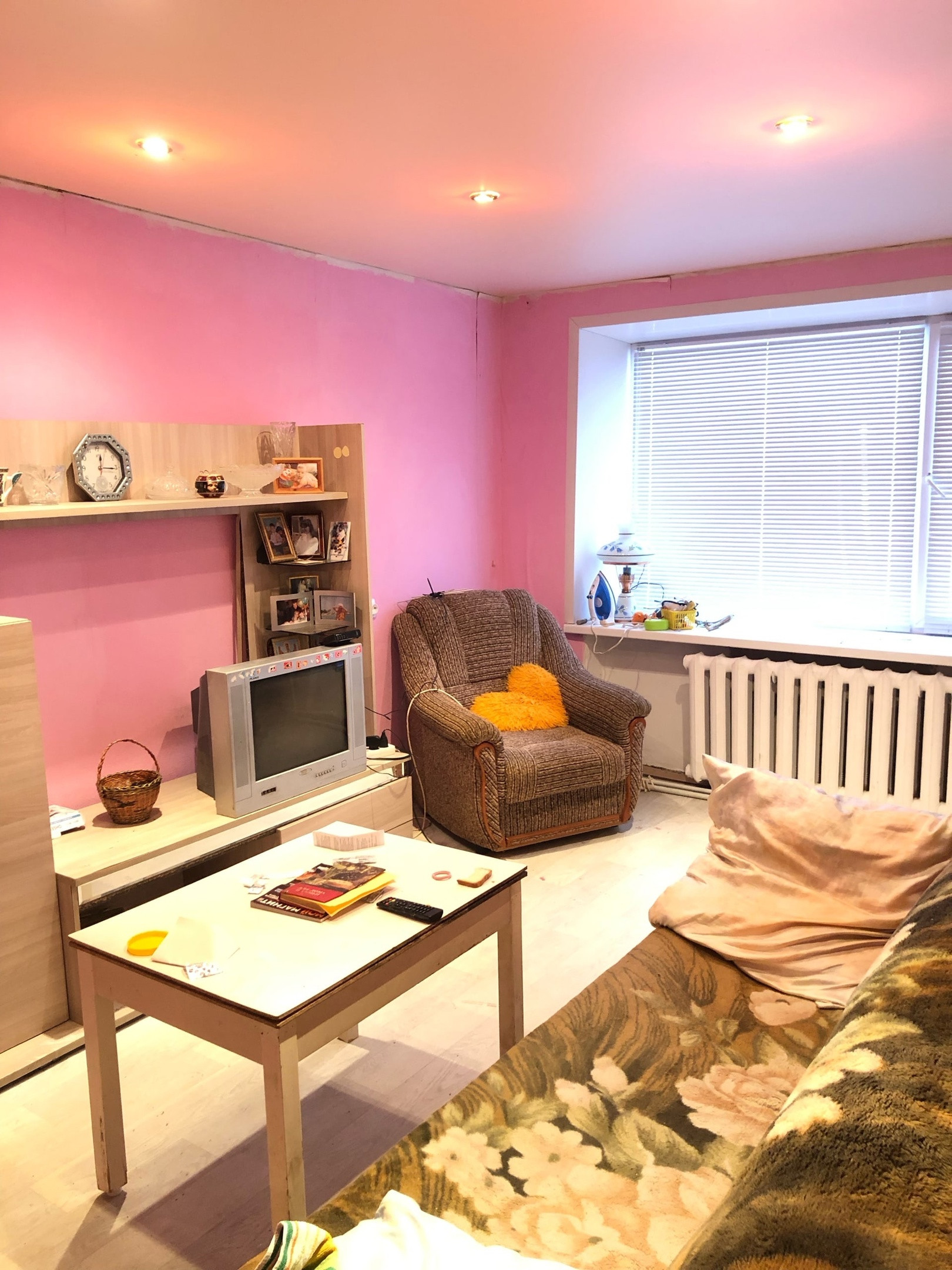 В квартире начат ремонт. В комнате и на кухне установлены стеклопакеты, сделан натяжной потолок.