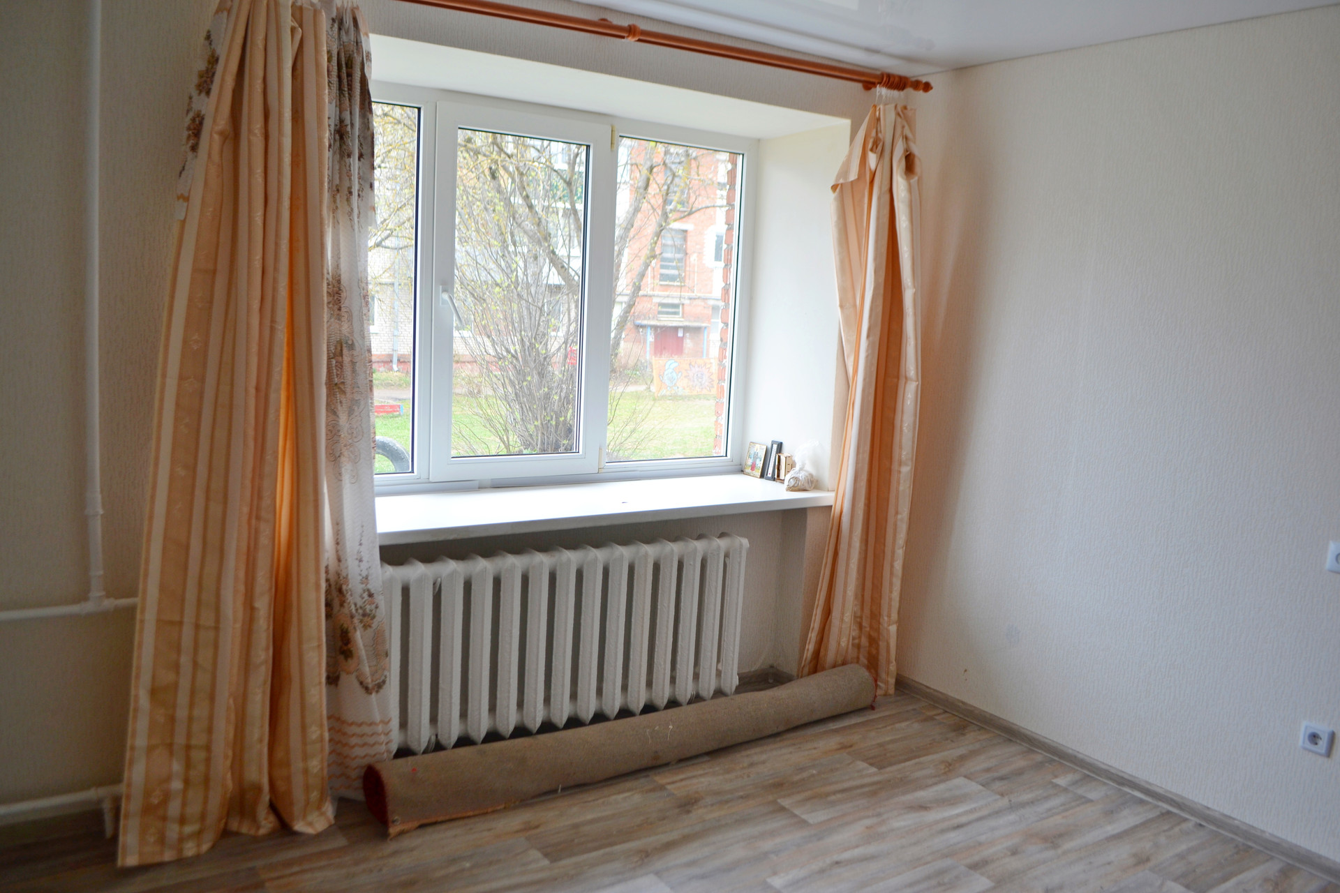 Во всей квартире линолиум и натяжной потолок