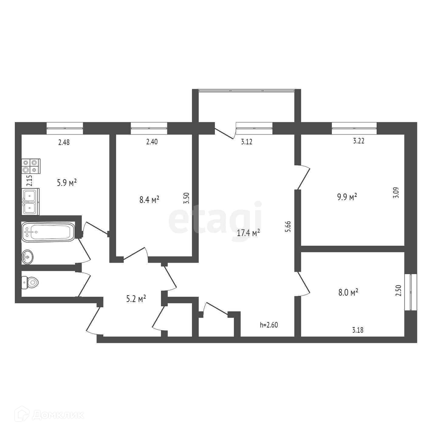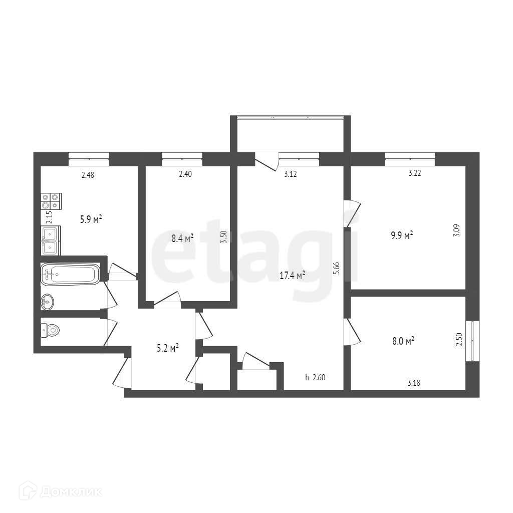 Общая площадь 59.2 м2