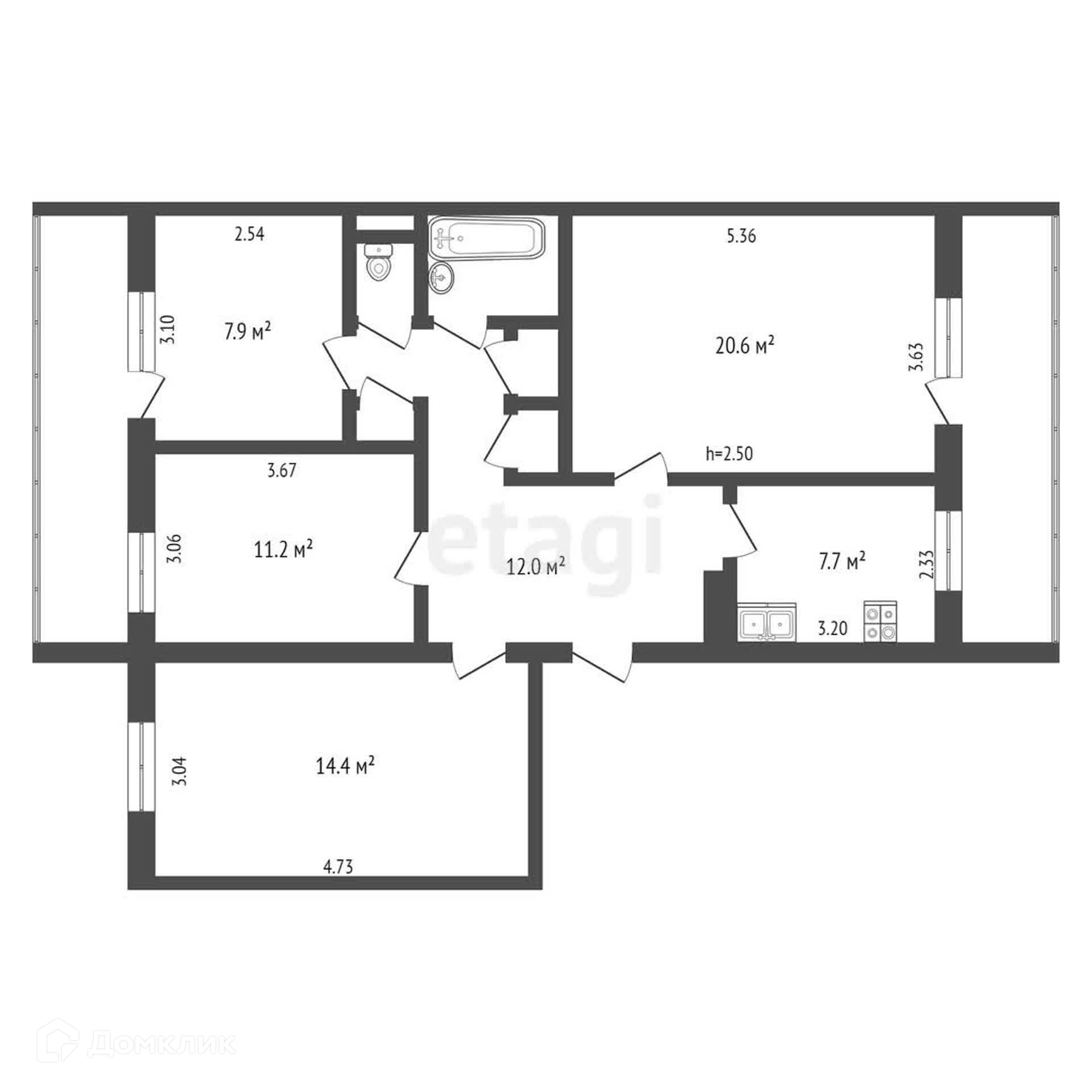 Общая площадь 78.9 м2