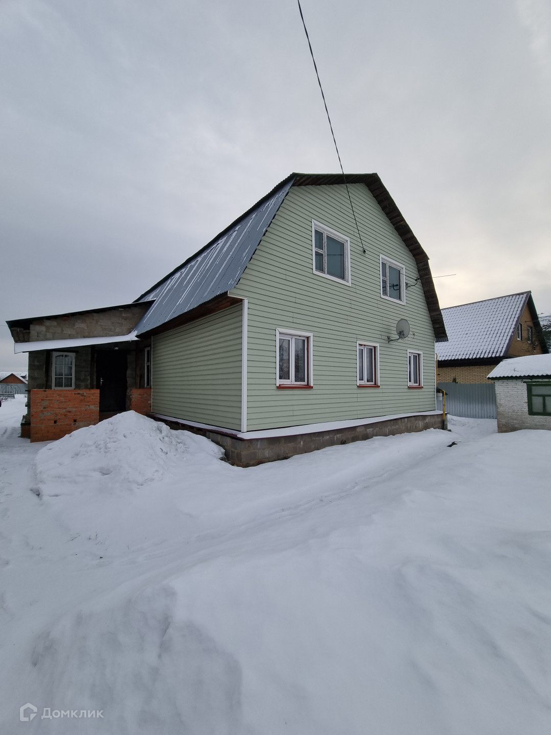 Жилой дом 1: общая площадь 124,5 кв.м. сложен из бревен и блоков, снаружи утеплен и обшит сайдингом. Фундамент ленточный, крыша покрыта оцинкованными листами железа.