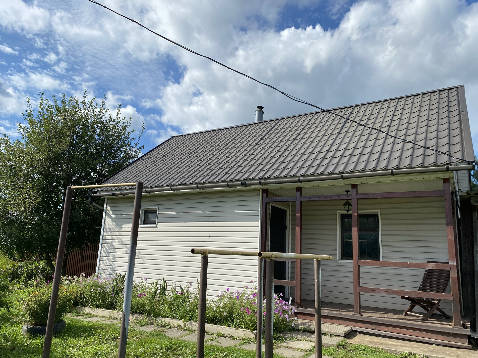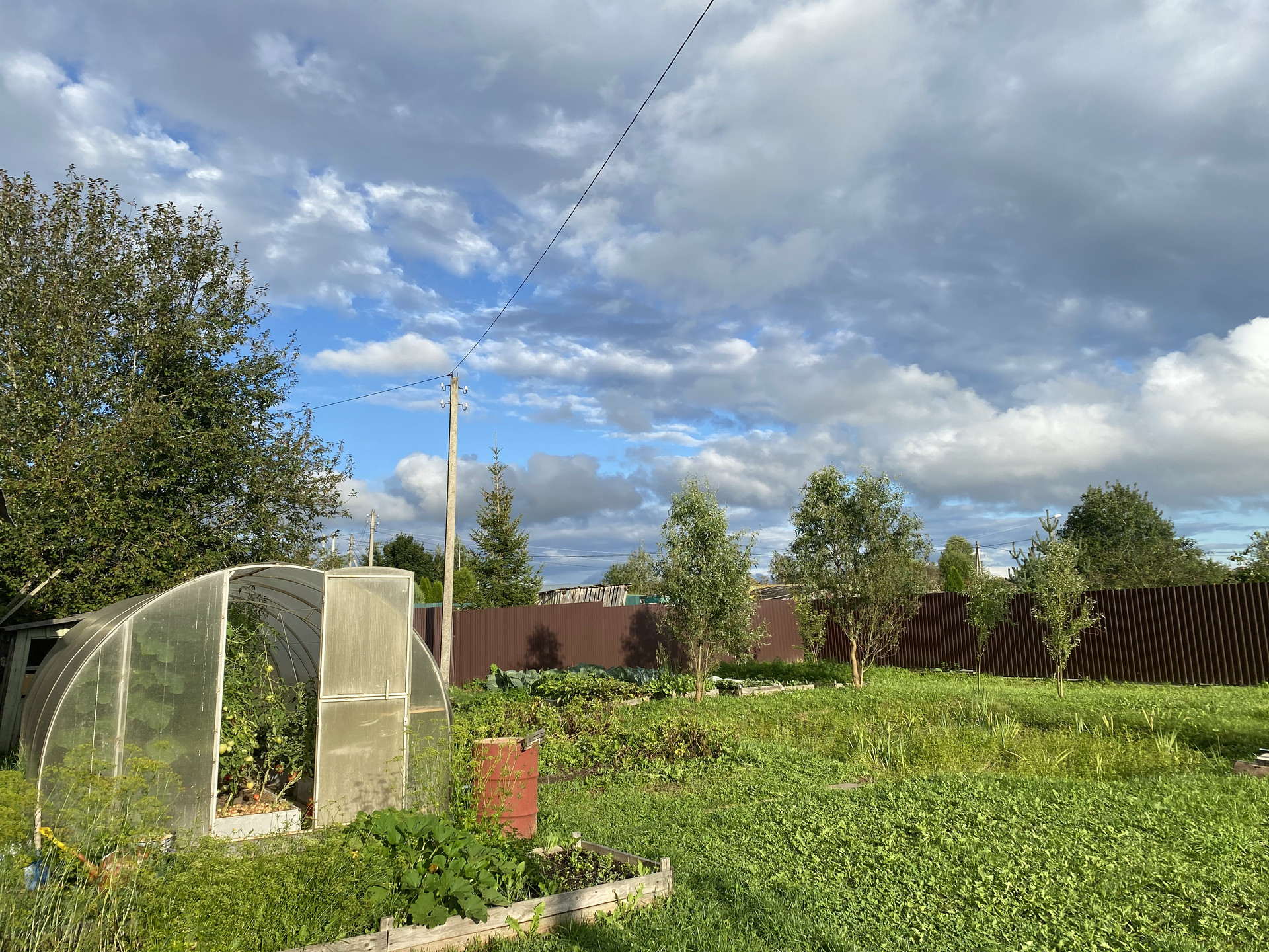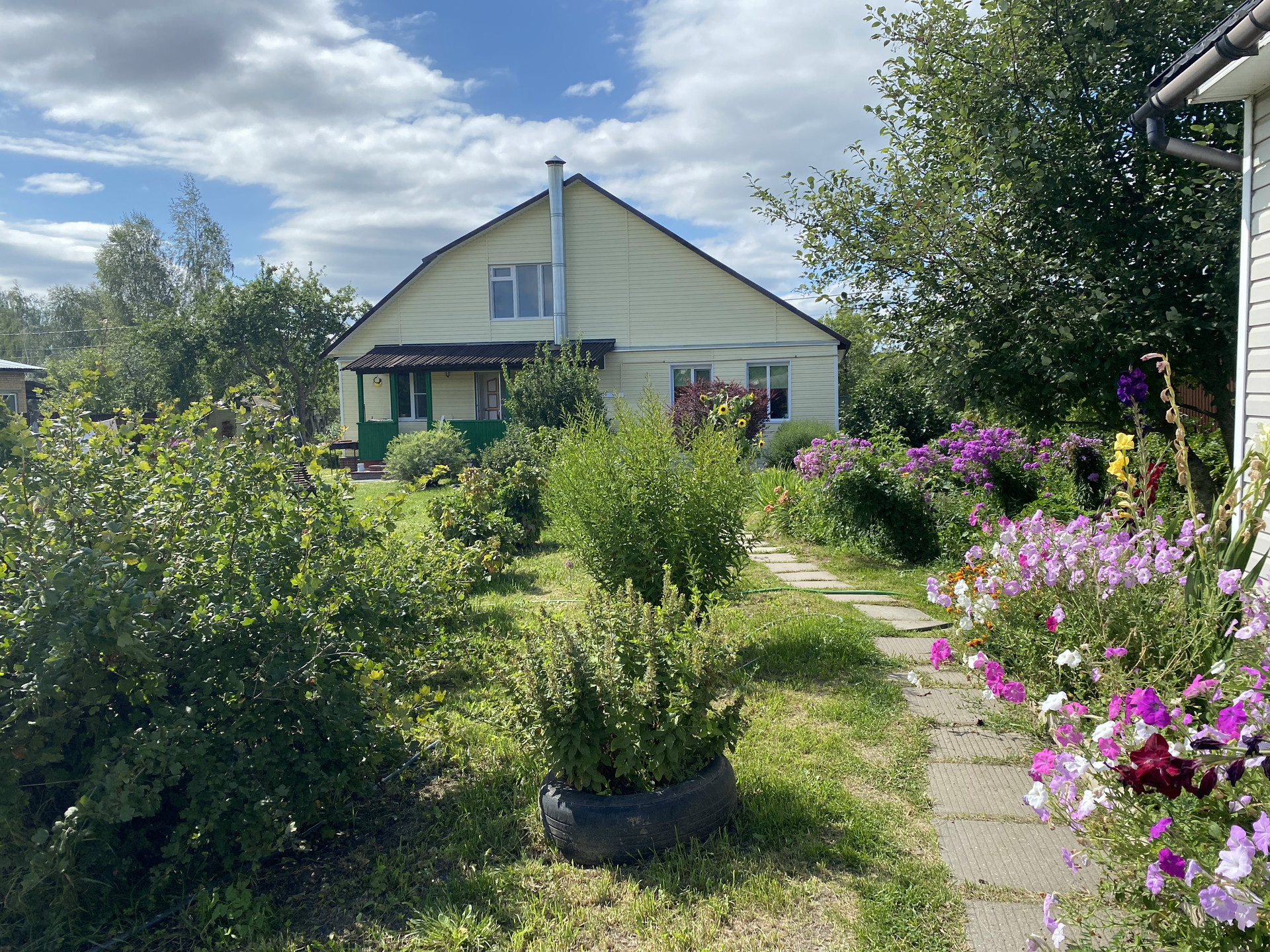 На участке есть декоративные и плодово-ягодные растения: яблони, груши, черная и красная смородина, малина, клубника, крыжовник, черемуха, черноплодная рябина, ива, барбарис, гортензия, сирень, чубушник (жасмин).