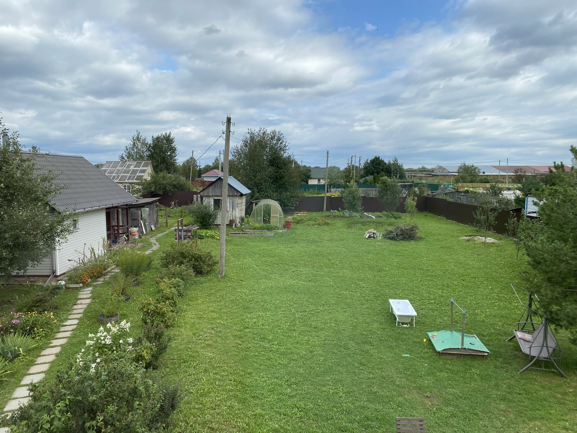 Имеются хозяйственные постройки для хранения садового инвентаря, мастерская, теплица. Для детей есть песочница.